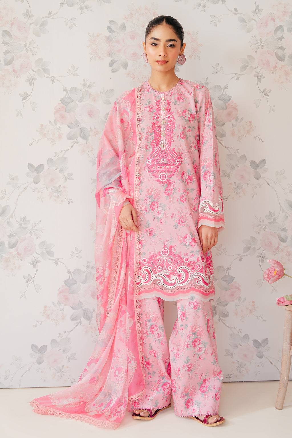 This elegant unstitched lawn suit features embroidered front right and left panels, a matching embroidered back, and 0.63-meter embroidered sleeves. It is enhanced with an organza embroidered neckline patch for added charm and paired with a 2.5-meter silk digital printed dupatta. Finished with a comfortable cotton dyed trouser, this 3-piece suit is perfect for casual chic and festive wear.