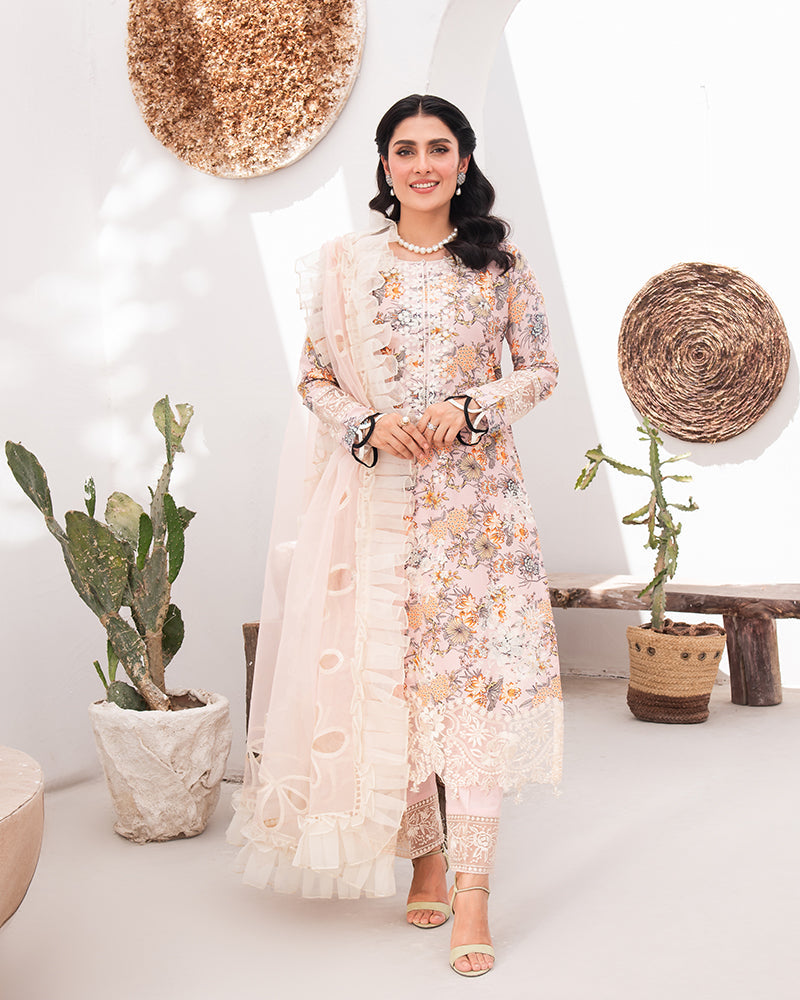 Printed lawn Embroidered Shirt, adorned with delicate embellishments on the shirt bottom.