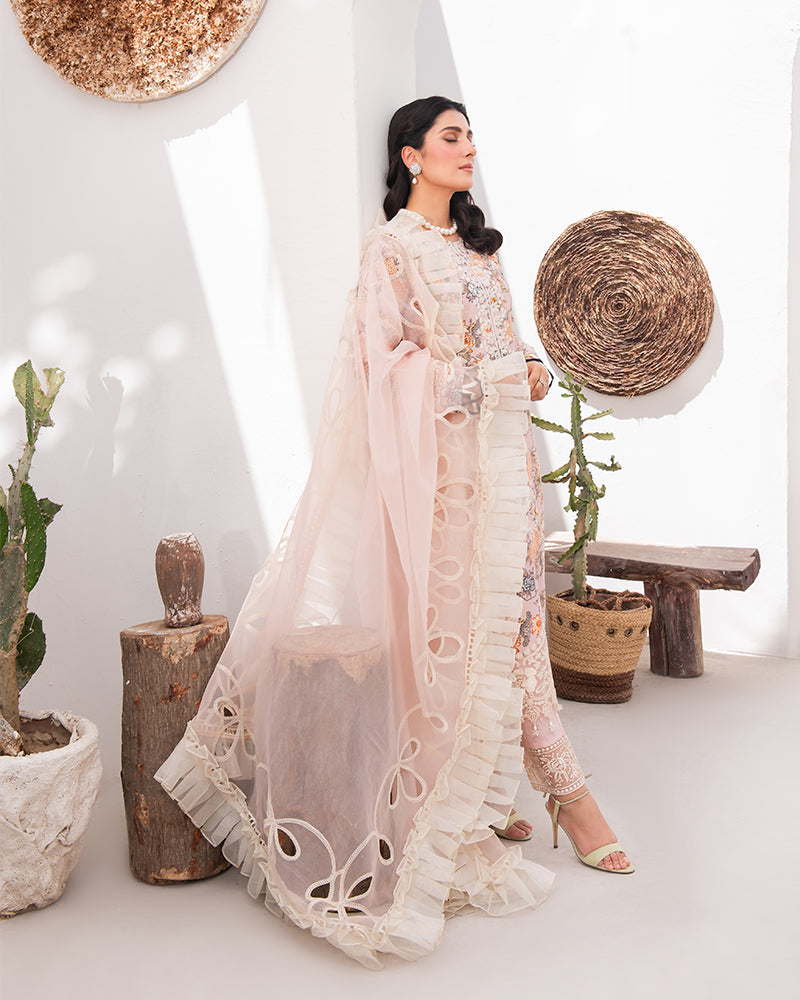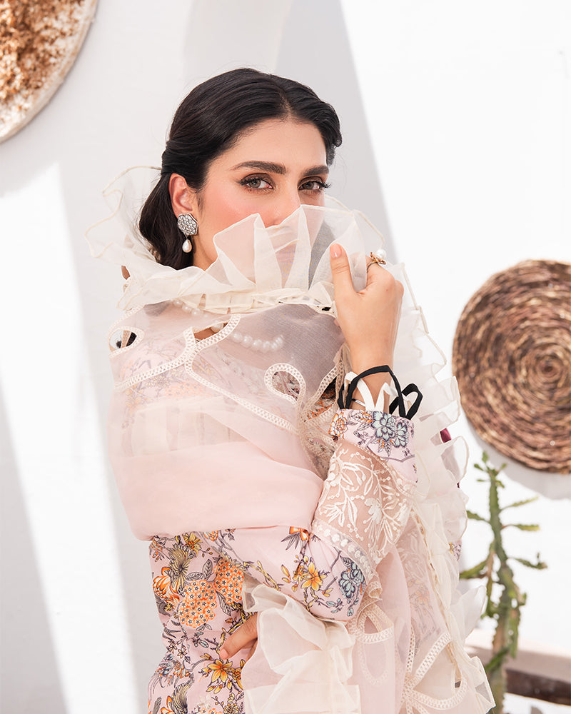 Complete your look with our stunning Organza Cutwork Embroidered Dupatta, featuring a beautiful organza frill. This dupatta adds a touch of sophistication to any outfit.