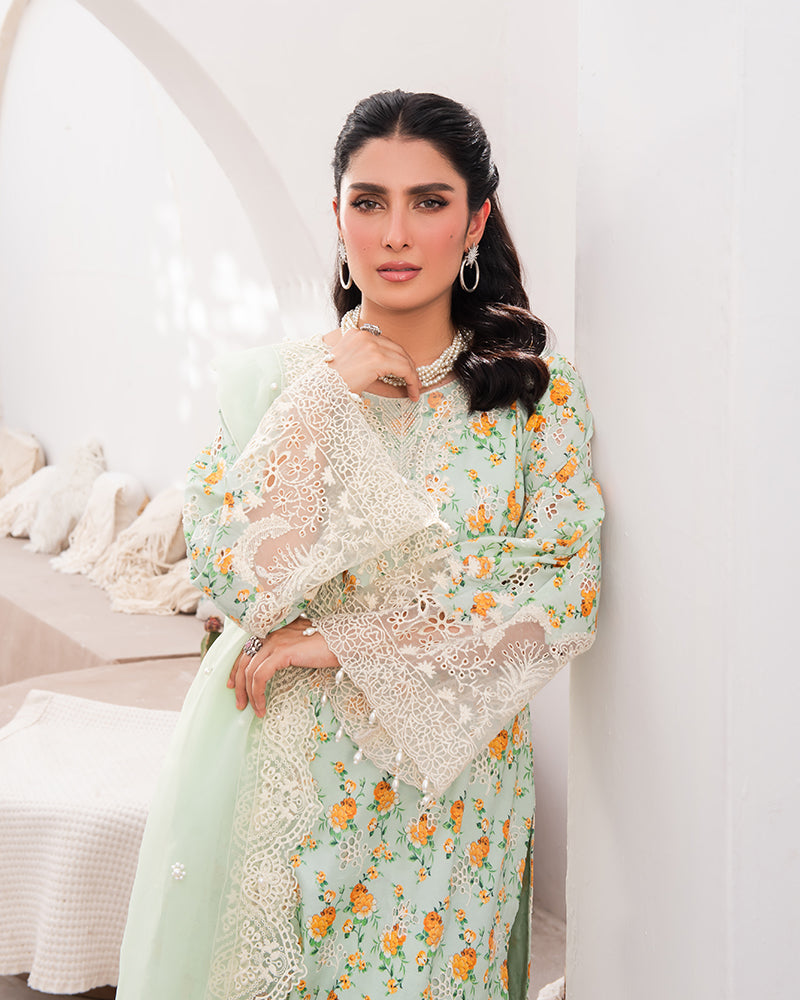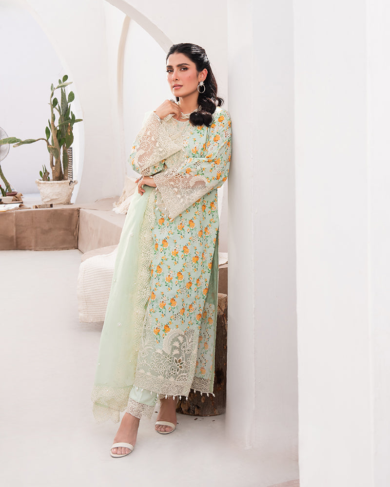 Paired with a stunning Organza Embroidered Dupatta, embellished with pearls for an added touch of elegance