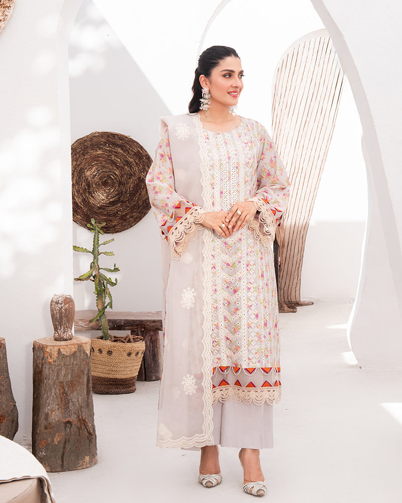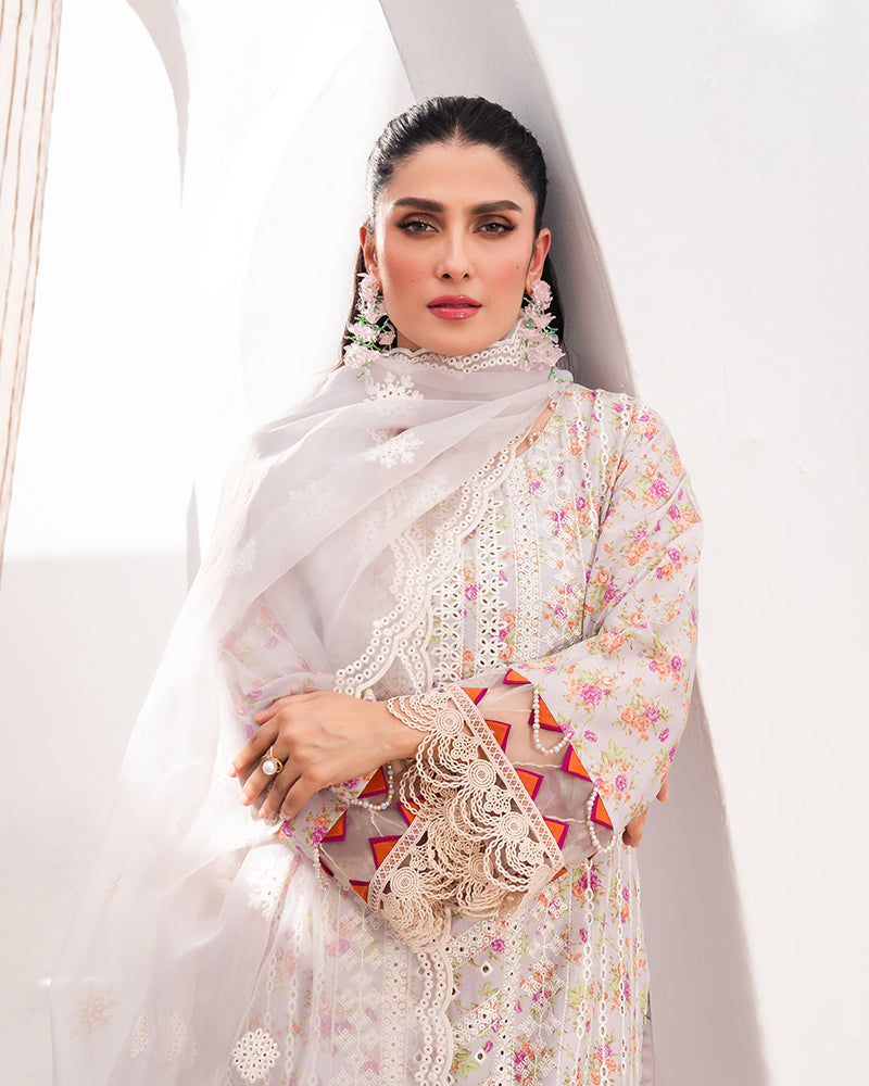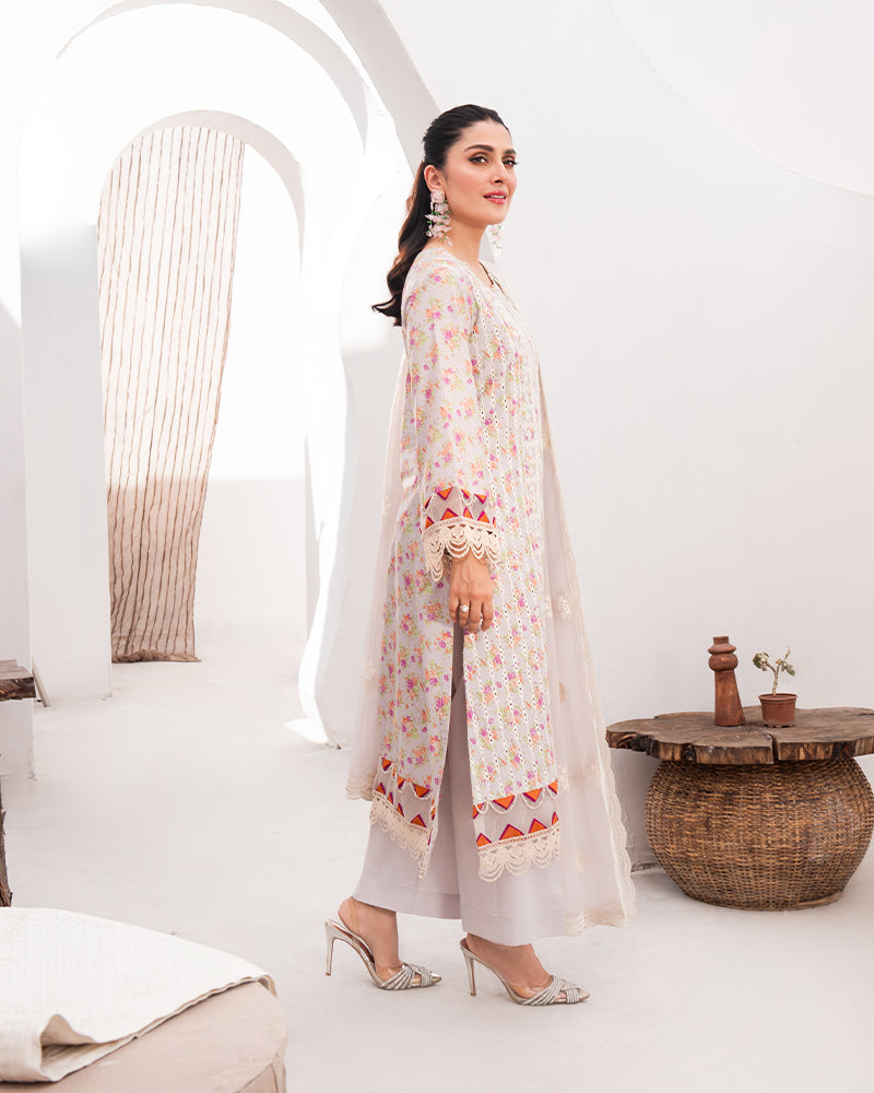 Printed Lawn chikankari embroidered shirt, adorned with the beautiful lace on the sleeves and shirt border, which elevates this piece to a new level of elegance.