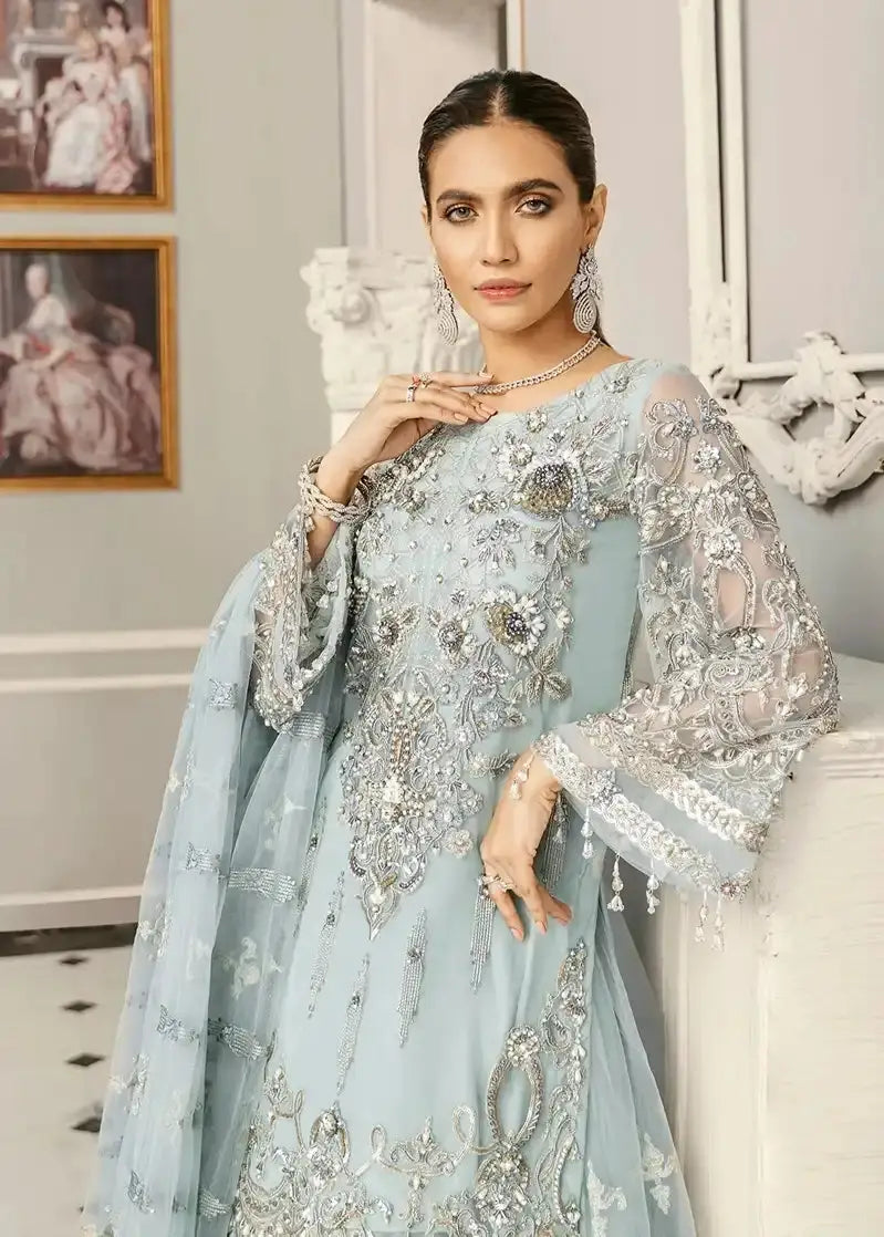 From Akbar Aslam’s Formal Collection, this graceful ensemble highlights timeless artistry with modern refinement. The net-embroidered hand-embellished shirt and lehenga exude grandeur, paired with an elegant net dupatta and a Russian grip inner for structure. Perfect for weddings and festive celebrations, this outfit blends tradition with sophistication.