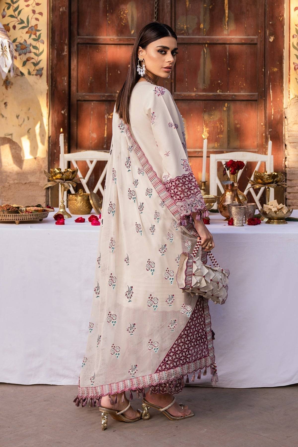 This Beige digital printed lawn set from the Rawayat Luxury Lawn 24 Collection features a finely embroidered shirt paired with a dyed cotton trouser. The shirt is adorned with embroidered front and sleeves, front and back daman patti, and organza sleeves patti. The chiffon dupatta is fully embroidered with four-sided organza patti and four embroidered motifs, while the trouser features an embroidered organza patch, creating an elegant and sophisticated ensemble perfect for formal gatherings, festive occasions, or casual celebrations.