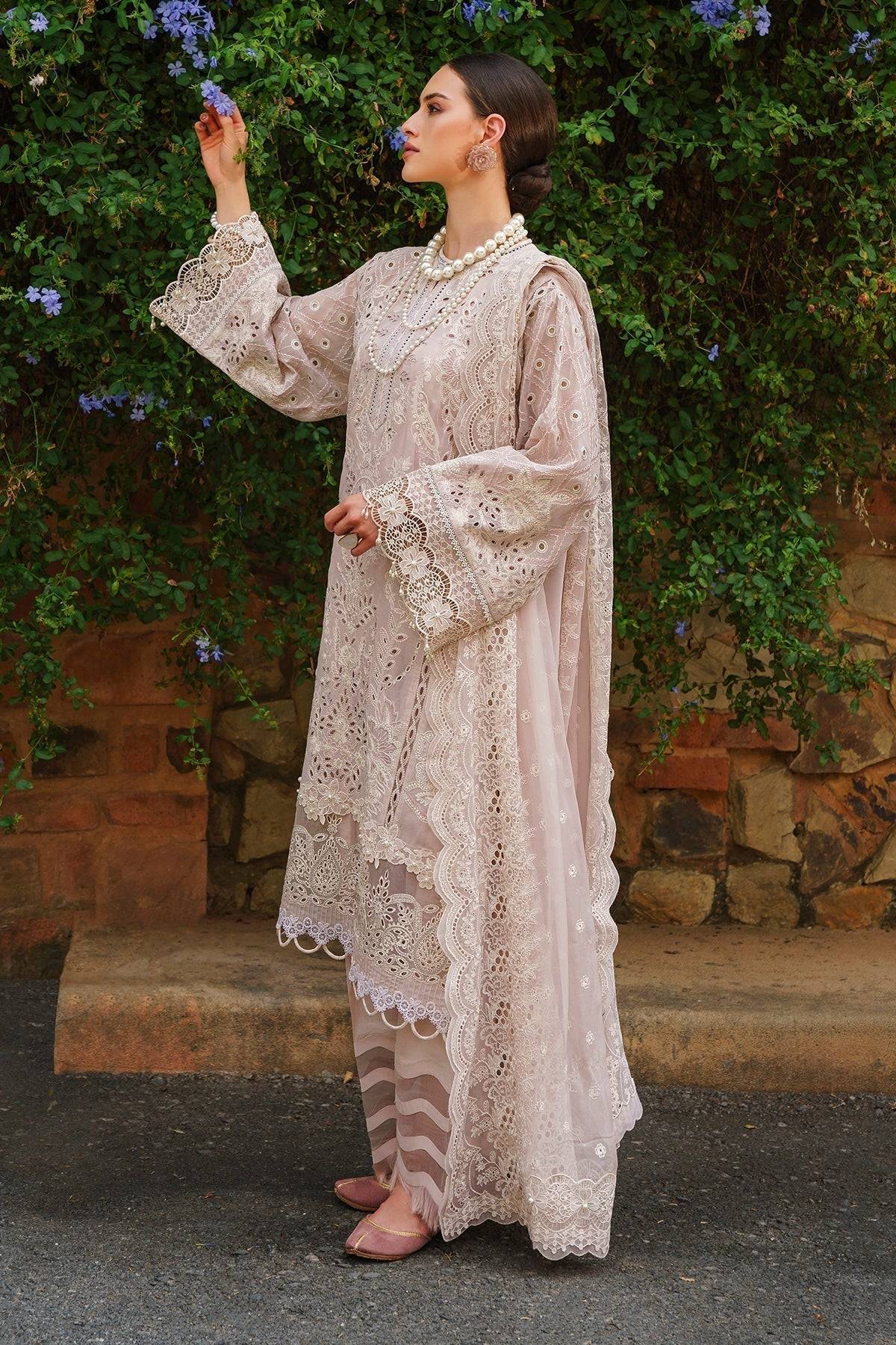 Step into elegance with this powder pink ensemble from Baroque’s Swiss Lawn 24 collection, a perfect blend of refined embroidery and timeless design. The swiss lawn shirt is beautifully adorned with embroidered front and side panels, complemented by organza patches and intricate borders. A richly embroidered chiffon dupatta with organza finishing adds a graceful touch, while the dyed cotton trouser ensures both comfort and sophistication. This outfit is a true statement for festive gatherings and special occasions.