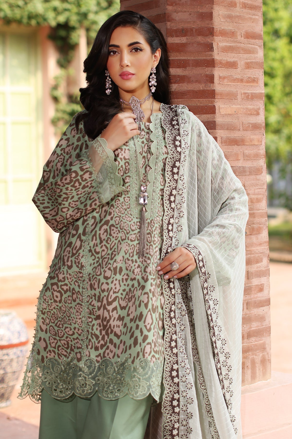 From Charizma’s Combination 25 Collection, this 3-piece suit is a perfect blend of embroidered artistry and elegant prints. The shirt comes with printed lawn front, back, and sleeves (3m) enhanced by embroidered front and back daman patti (1.5m), sleeves + trouser patti (2m), neckline patti (1.25m), and side slit + panel patti (4m) for detailed finishing. A dyed cotton trouser (2.5m) adds comfort and balance to the look. The ensemble is completed with an embroidered dyed chiffon dupatta (2.5m), further adorned with embroidered dupatta pallu patti (2.25m), creating a festive-ready outfit.
