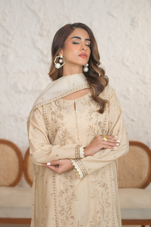 Type: Embroidered Naps Lawn Shirt with Cambric Trouser and Embroidered Khaddi Silk Dupatta