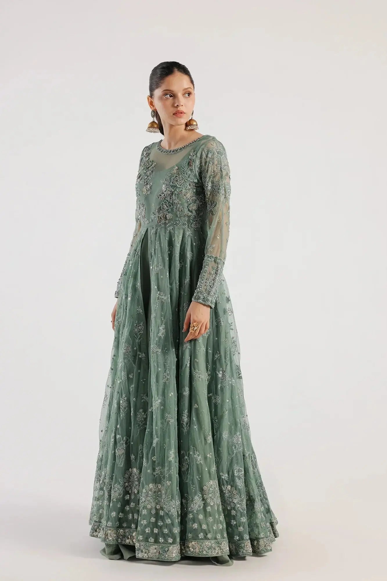 Look breathtakingly beautiful in this mesmerizing apple green outfit. It depicts a contemporary pishwas silhouette with a slit at front below yoke and enriched with beautiful floral embroidery illustrating a blooming garden and embellished with scintillating beads. Illustrating an elongated look, the divine gorgeous shirt is paired with an inner sleeveless shirt and a classically draped dupatta enriched with enchanting embroidery. Feel like a diva in this fairytale ensemble and style at festive events.
