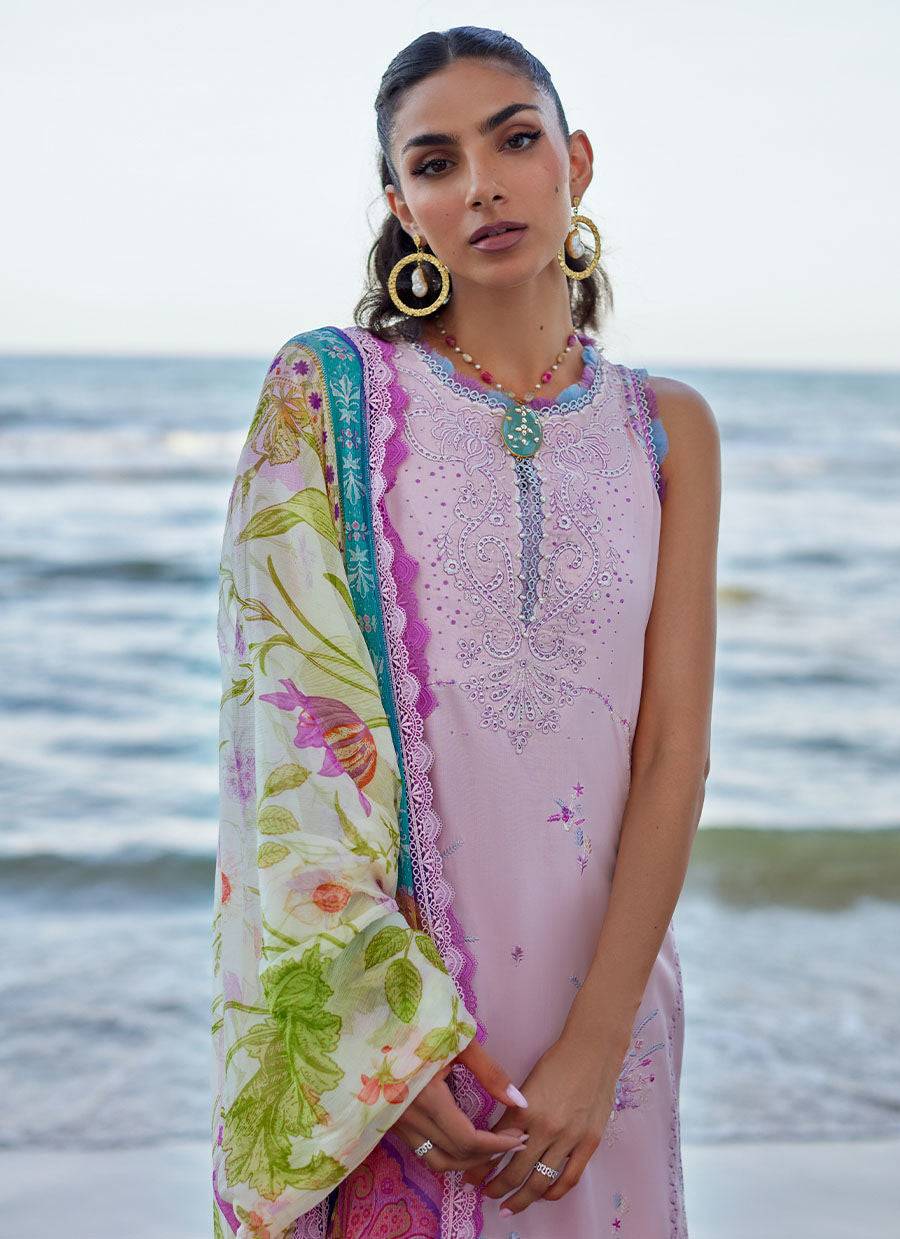 Step into the season with this enchanting lavender ensemble from Farah Talib Aziz’s Suay Lawn 24 Collection. The lawn shirt features beautifully embroidered composed front, back, and sleeves, paired with elegant organza borders that enhance its delicate charm. Complemented with jacquard pants and a printed chiffon dupatta, this outfit perfectly balances traditional embroidery with modern elegance, making it ideal for spring and summer festive occasions.