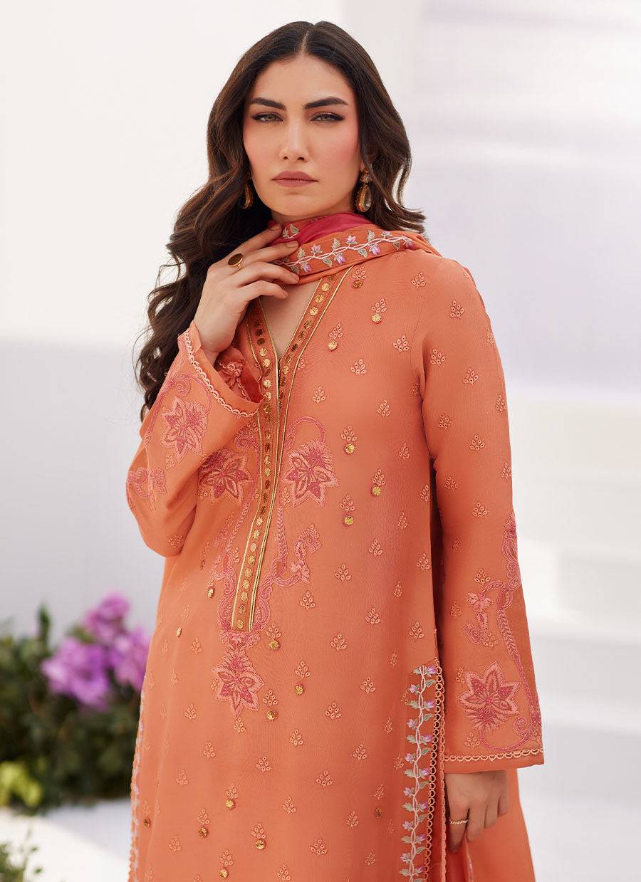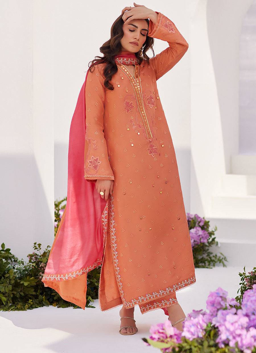 Farah Talib Aziz | Zaza Luxe Pret 24 | ELYNA CORAL EMBROIDERED RAW SILK SHIRT AND DUPATTA
