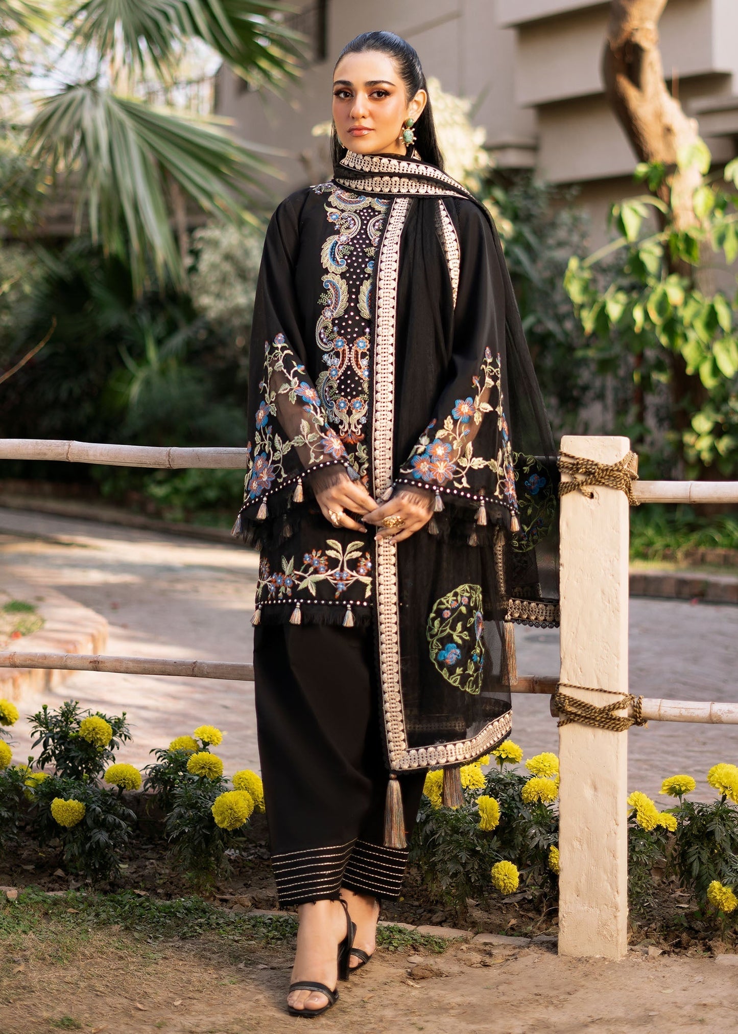 Turn heads with this stunning Black Embroidered Lawn Ensemble, a fusion of luxury and festive charm. The delicate embroidery on shirt in vibrant multi-tones gives this outfit a lively yet regal aura, while the flowy rocket net dupatta with bold multi-colored accents adds a striking statement. Whether you're attending a wedding, Eid gathering, or a festive celebration, this ensemble ensures effortless glamour.