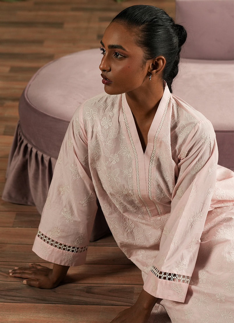 The Pink Cotton Embroidered Kurta from our Spring The Tea '25 Collection features a straight silhouette, V neckline, and full-length embroidered sleeves.‚¬€¹