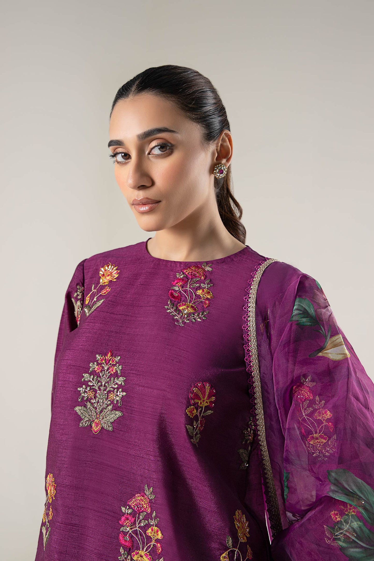 Maria B | Basics RTW | 3 Pc Embroidered Raw Silk Suit | MB-WF24-47