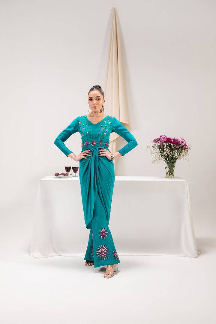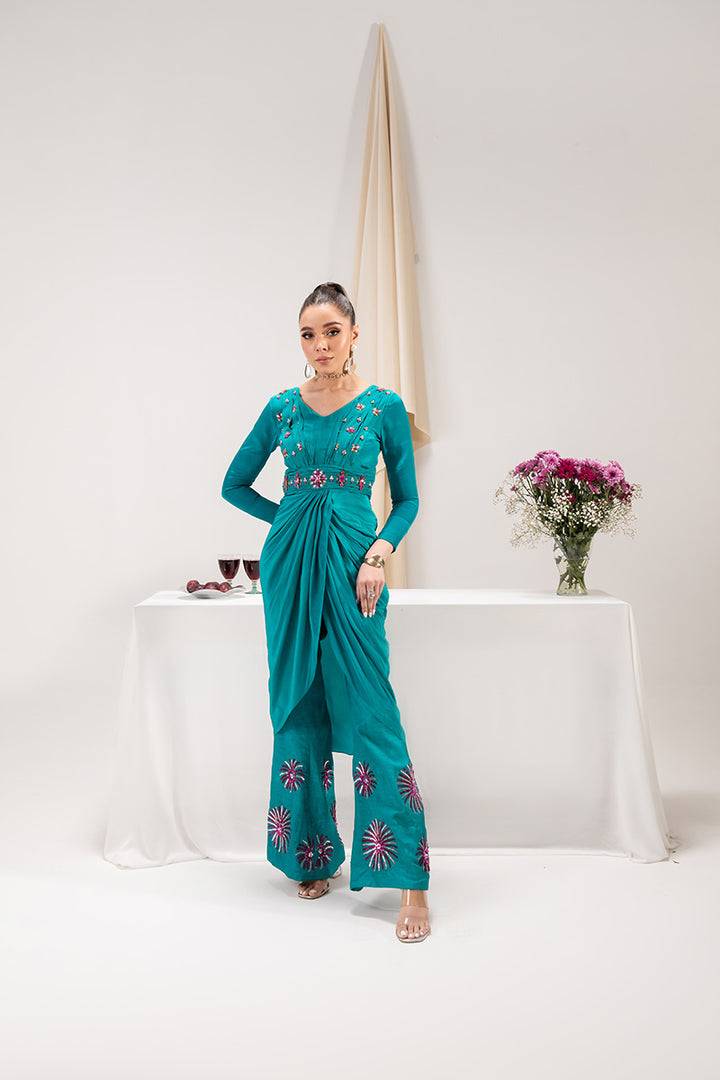 2PC (Grip Drape, Hand embellished body with Korean hand embellished trouser)