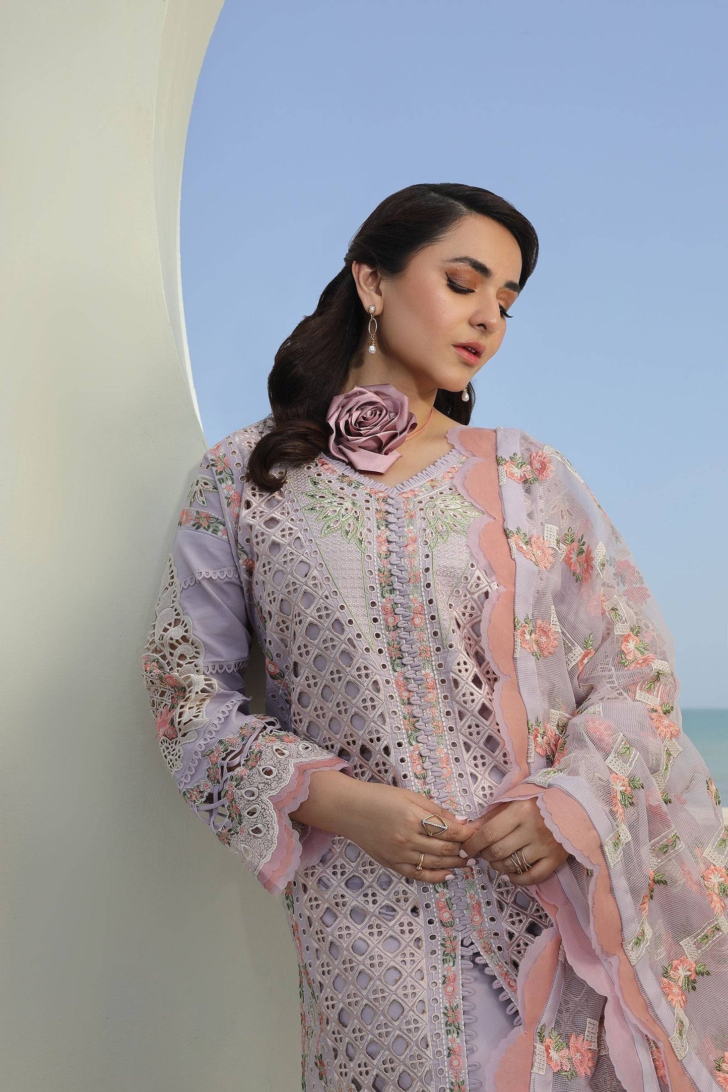 Embroidered dupatta on Rocket net
