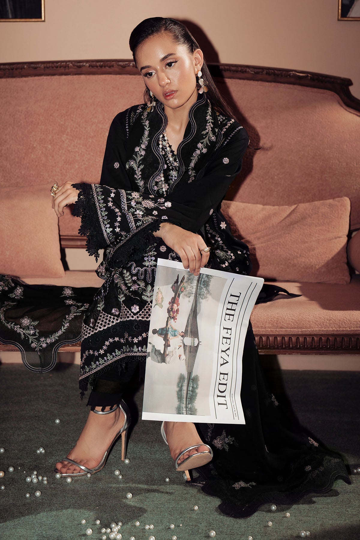Celebrate Eid in timeless elegance with this Nureh embroidered lawn outfit from the Feya Eid Collection. The delicately embroidered lawn shirt is paired with a graceful chiffon dupatta and a dyed cotton trouser, creating a perfect balance of comfort and sophistication. Designed for festive gatherings, this outfit ensures you stand out with effortless charm.