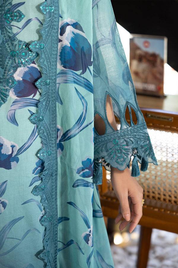 This graceful ensemble features a printed lawn chikankari shirt paired with a printed and embroidered chiffon dupatta, creating an elegant and cohesive look. Printed cotton trousers provide comfort and structure, completing the outfit with a polished silhouette. Perfect for casual gatherings or semi-formal festive occasions, this outfit highlights Nureh’s commitment to timeless craftsmanship and refined design.