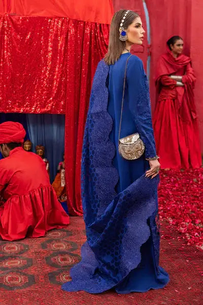 This elegant ensemble features an embroidered lawn shirt paired with an embroidered organza jacquard dupatta for a refined and graceful look. Dyed cotton trousers provide comfort and structure, completing the outfit with a polished silhouette. Perfect for festive or semi-formal occasions, this outfit highlights Nureh’s signature craftsmanship and attention to detail.