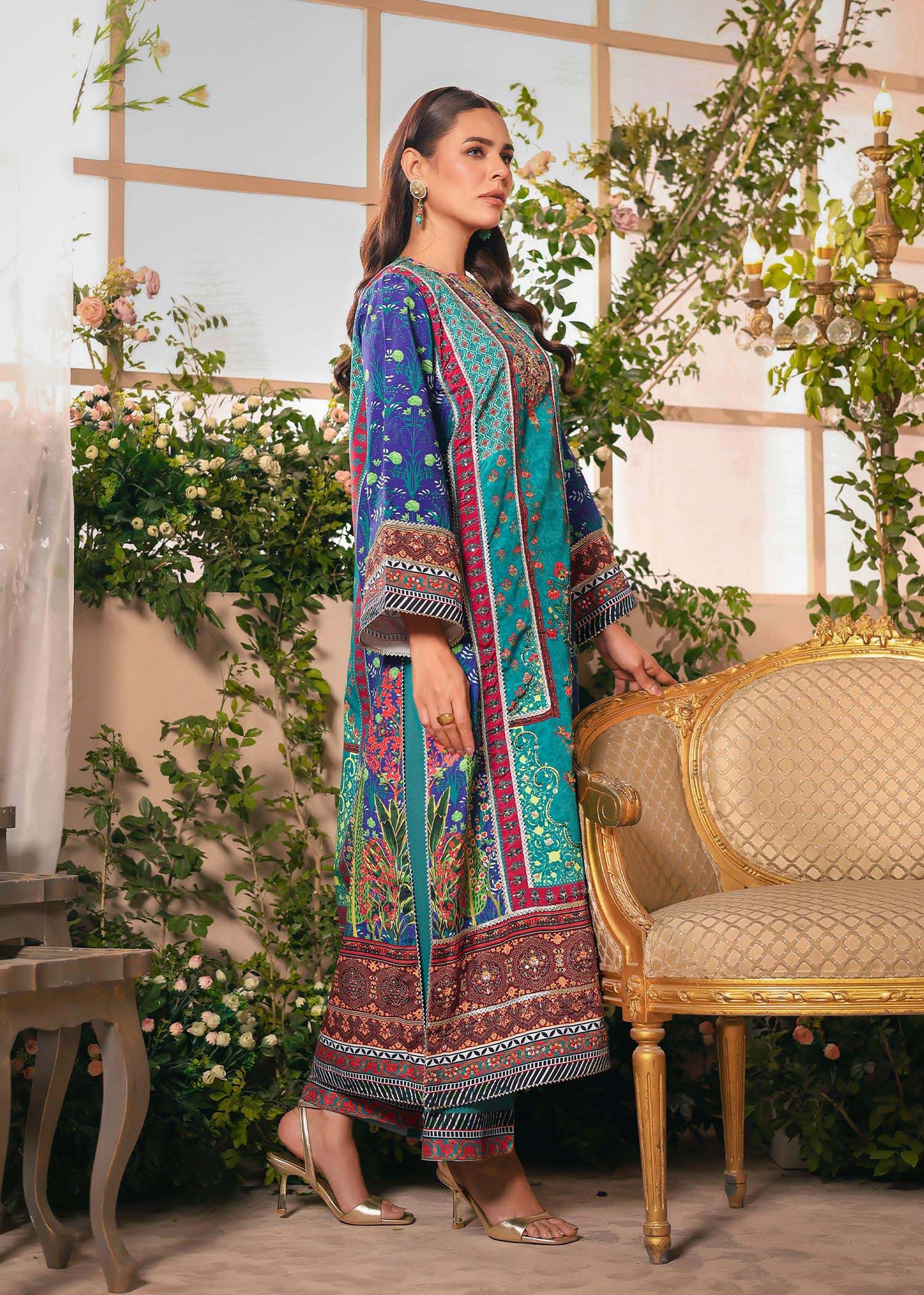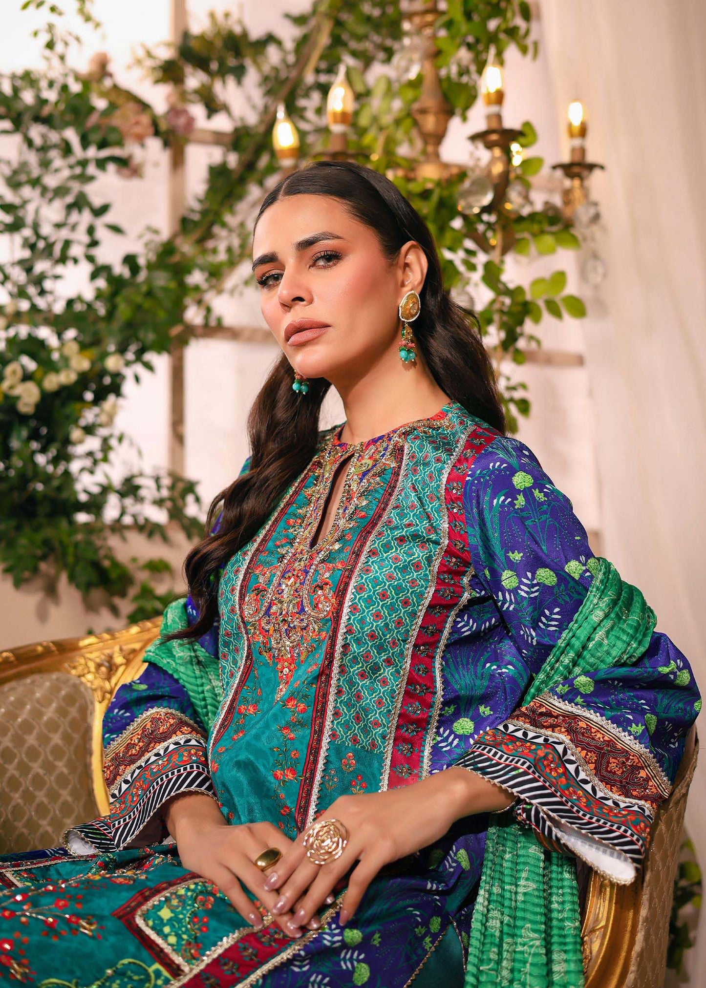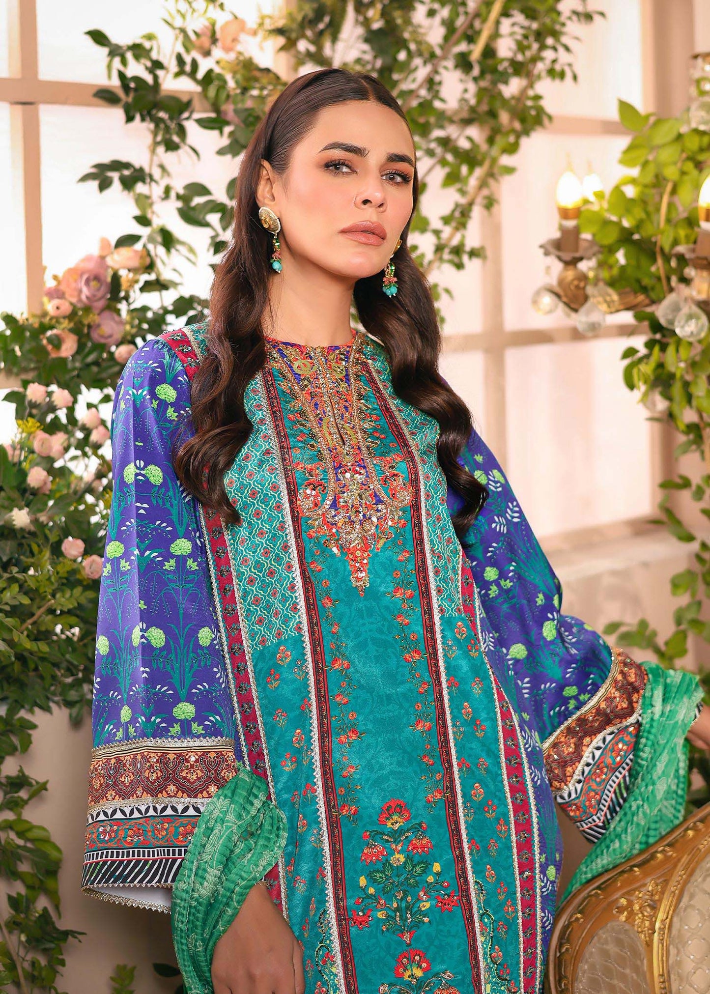 Grip Silk with sublimation print, elevated by intricate hand embellishments using Baithki Nakshi , Sitara and Gotta .Includes: Shirt, Trouser Dupatta.