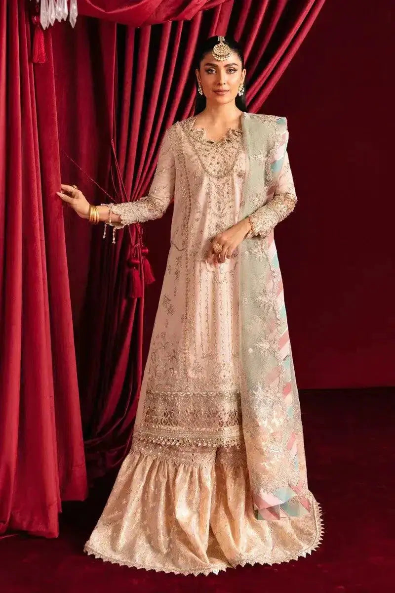 Experience timeless elegance with the Heer Ranjha 23 Collection by Qalamkar, where traditional craftsmanship meets regal sophistication. Each outfit is meticulously adorned with intricate embroidery and fine embellishments, perfect for weddings and festive celebrations.