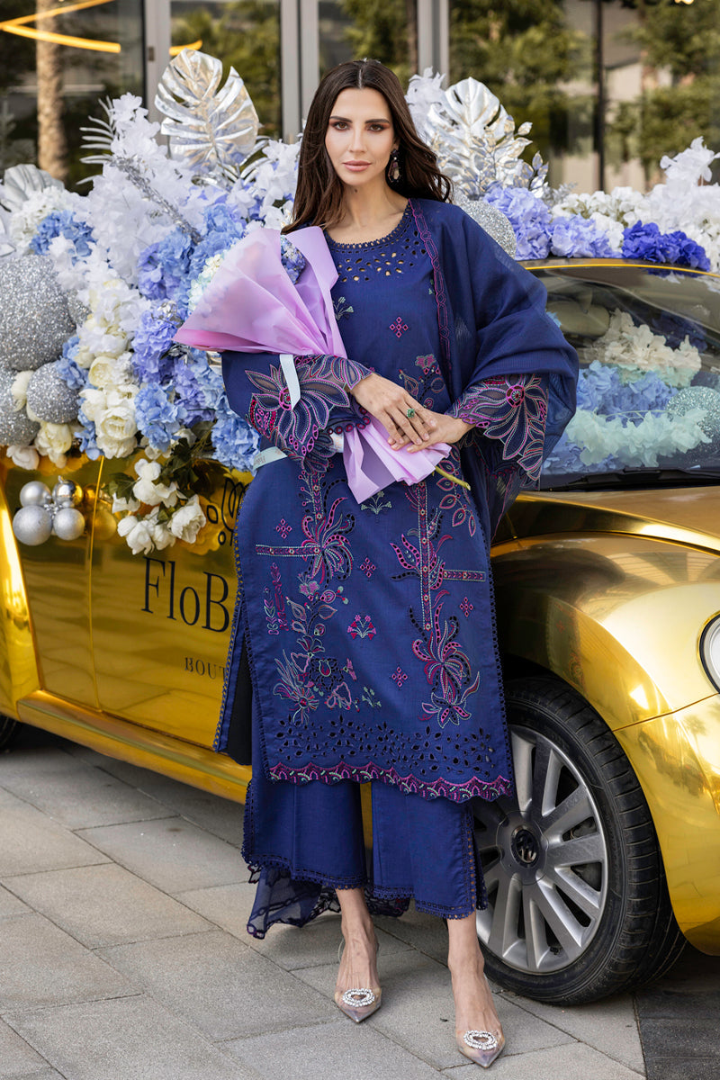 This Rangrasiya ensemble offers a stylish and elegant summer look. Featuring a dyed lawn shirt with embroidered front panel and organza embroidered border, paired with embroidered sleeves, a dyed organza dupatta pallu, textured embroidered dupatta, and dyed cambric trouser. The delicate embroidery and soft fabrics make it perfect for casual and daywear occasions.