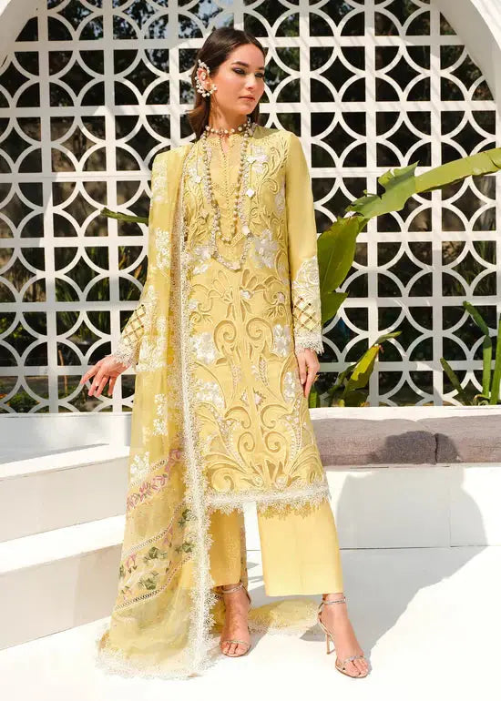 This elegant outfit from the Zara Eid Collection 24 by Saira Shakira is crafted with timeless sophistication. The cotton-net shirt is richly embroidered, showcasing intricate detailing that elevates the look with grace and charm. Designed for comfort and luxury, the ensemble is paired with a cotton silk slip, a stylish dupatta, and raw silk trousers that ensure a refined silhouette. A perfect choice for Eid and festive occasions, this outfit reflects modern elegance with traditional artistry.