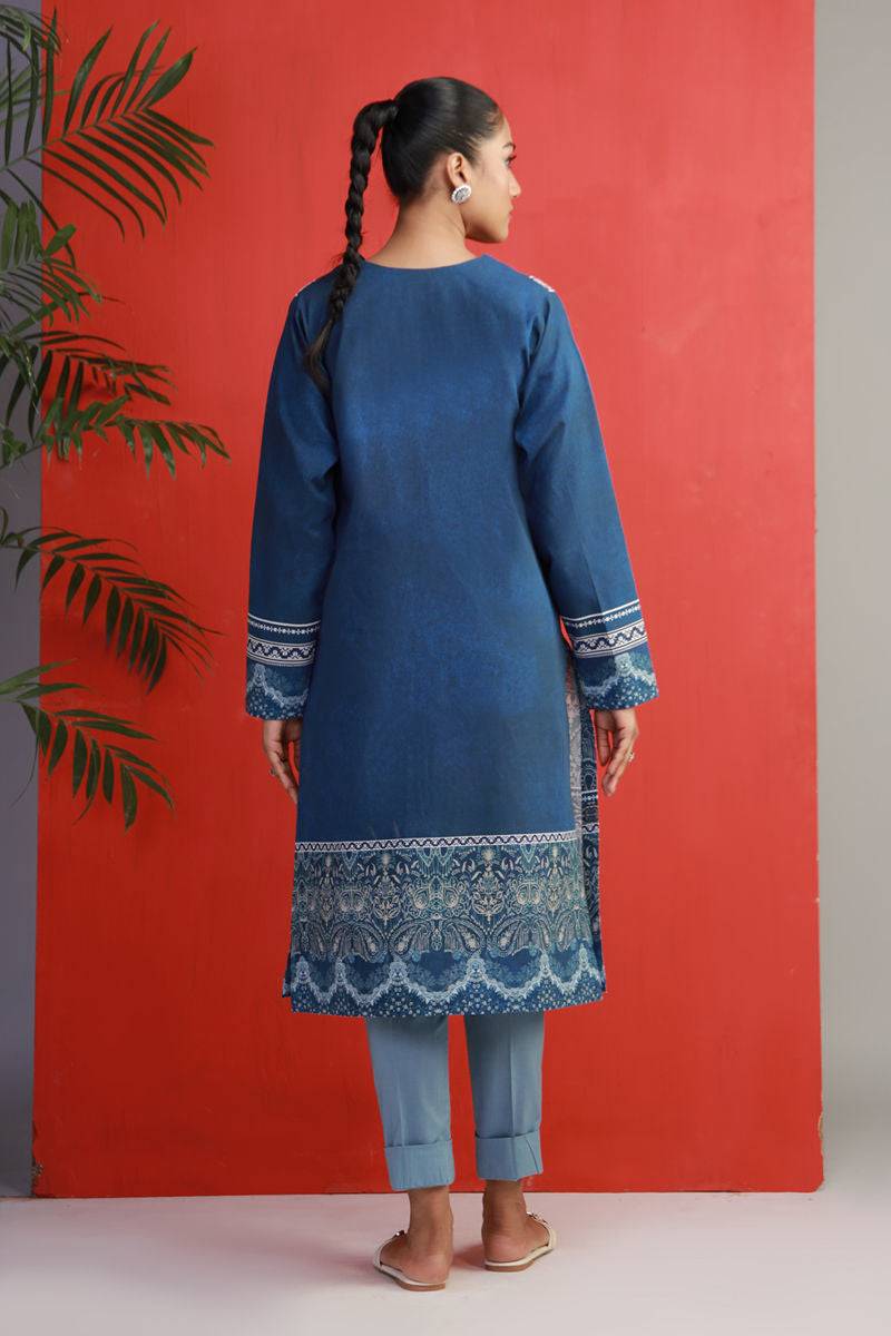 A timeless classic in blue and white, this full embroidered shirt is elegantly paired with a printed border for added detail. Complemented by solid trousers and a digitally printed silk dupatta, the ensemble effortlessly blends tradition with modern sophistication. Its graceful palette and intricate craftsmanship make it a versatile choice for enduring style.