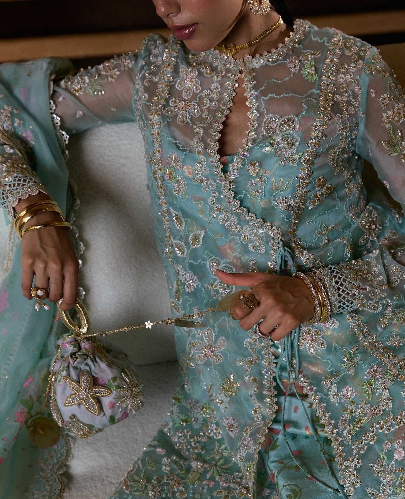 Meet "Illyra" your answer to looking effortlessly elegant at every special occasion! This stunning aquamarine ensemble from Suffuse's Freeshia RTW collection is exactly what you need when you want to feel confident, comfortable, and absolutely beautiful. Whether it's your cousin's wedding in Birmingham or Eid celebrations with family, Illyra has that perfect mix of traditional grace and modern style that photographs gorgeously and feels lovely all day long.