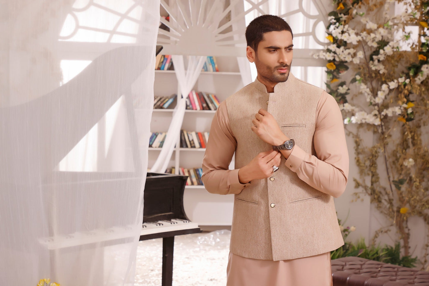 Men's Formal Jute Suiting Waistcoat with Matching Blended Kameez Shalwar .