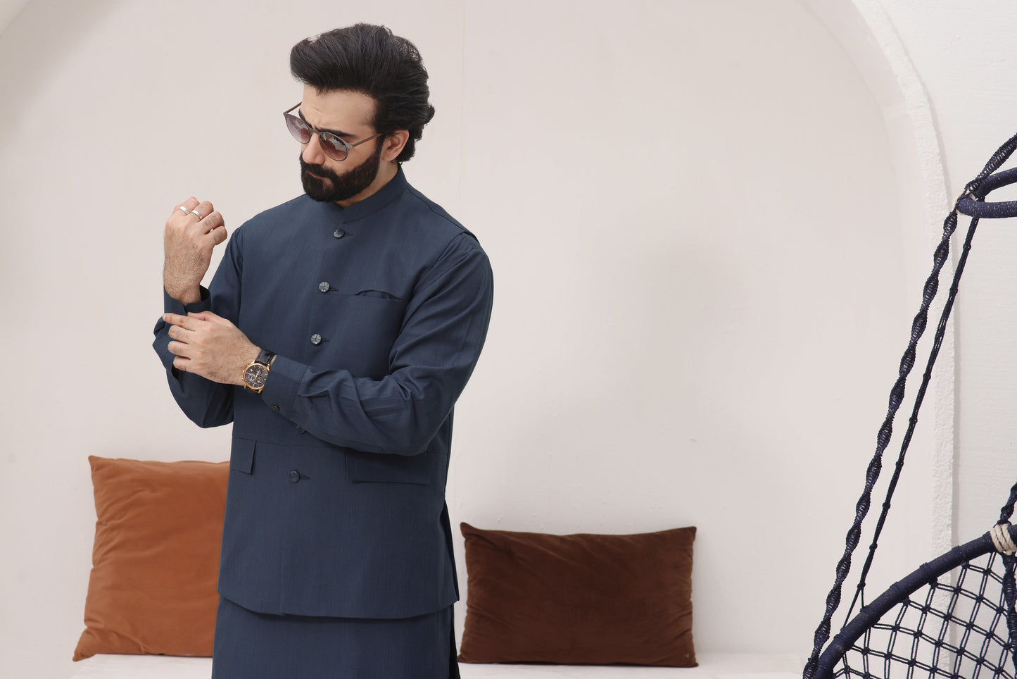 Description: Men's Formal Suiting Waistcoat with Matching Blended Kameez Shalwar .