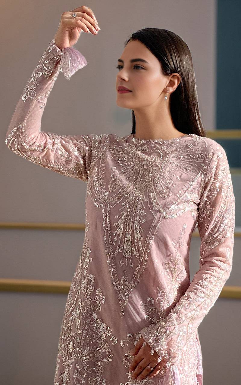 Our luxurious Net embroidered jacket, a masterpiece of craftsmanship and style. Adorned with dazzling sequins, radiant cut glass beads, crystals, and tassels, this stunning piece features a sequins inner lining that creates a luminous effect, ensuring you shine with unmatched elegance and grace, perfectly paired with an elegant inner shirt.