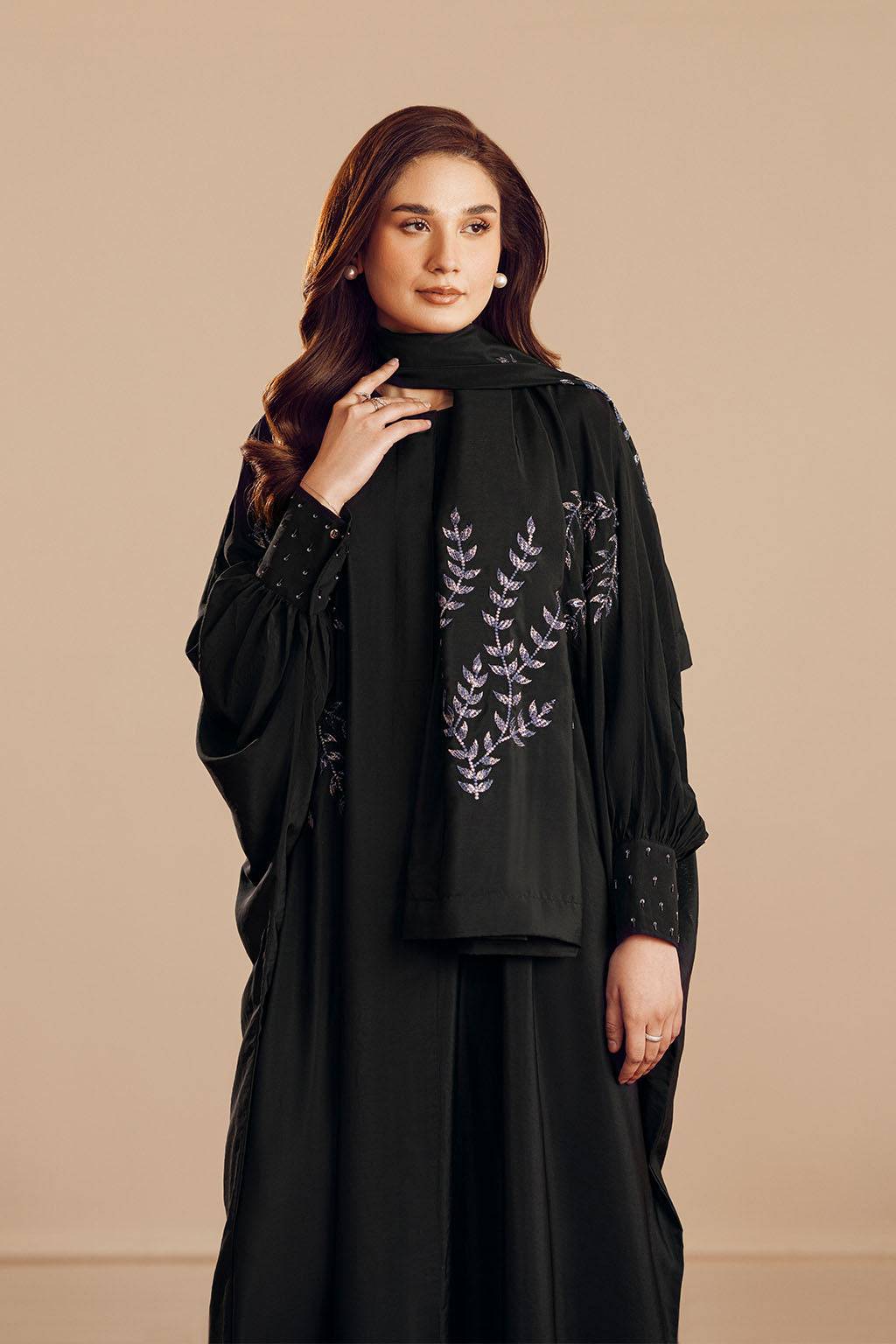 EMBROIDERED ABAYA WITH EMBROIDERED SCARF.