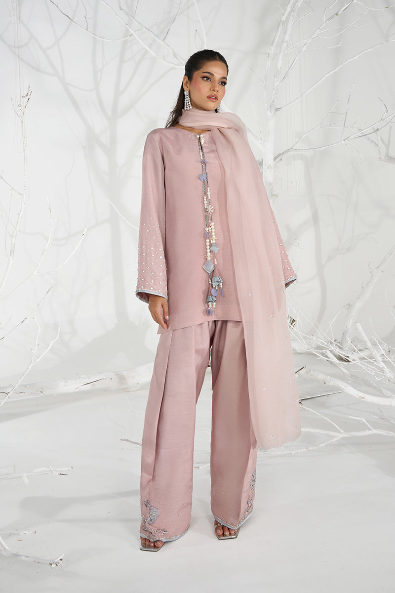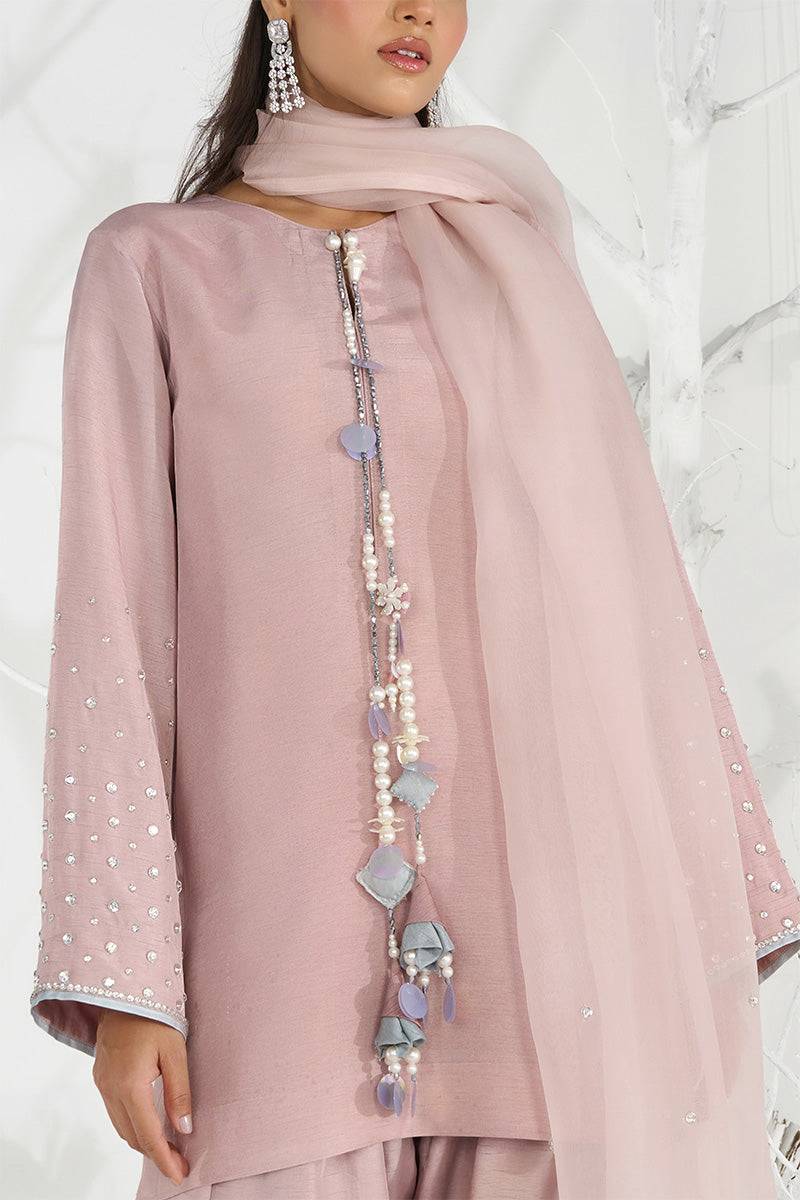 Formal Shalwar Kameez in Kashmiri Pink featuring intricate zardoze and crystal work with hand-crafted Tassel and applique detail. Comes with embroidered Farshi Shalwar. Pair It With crystal embellished Pure Organza matching Dupatta (Optional) To Complete The Look.