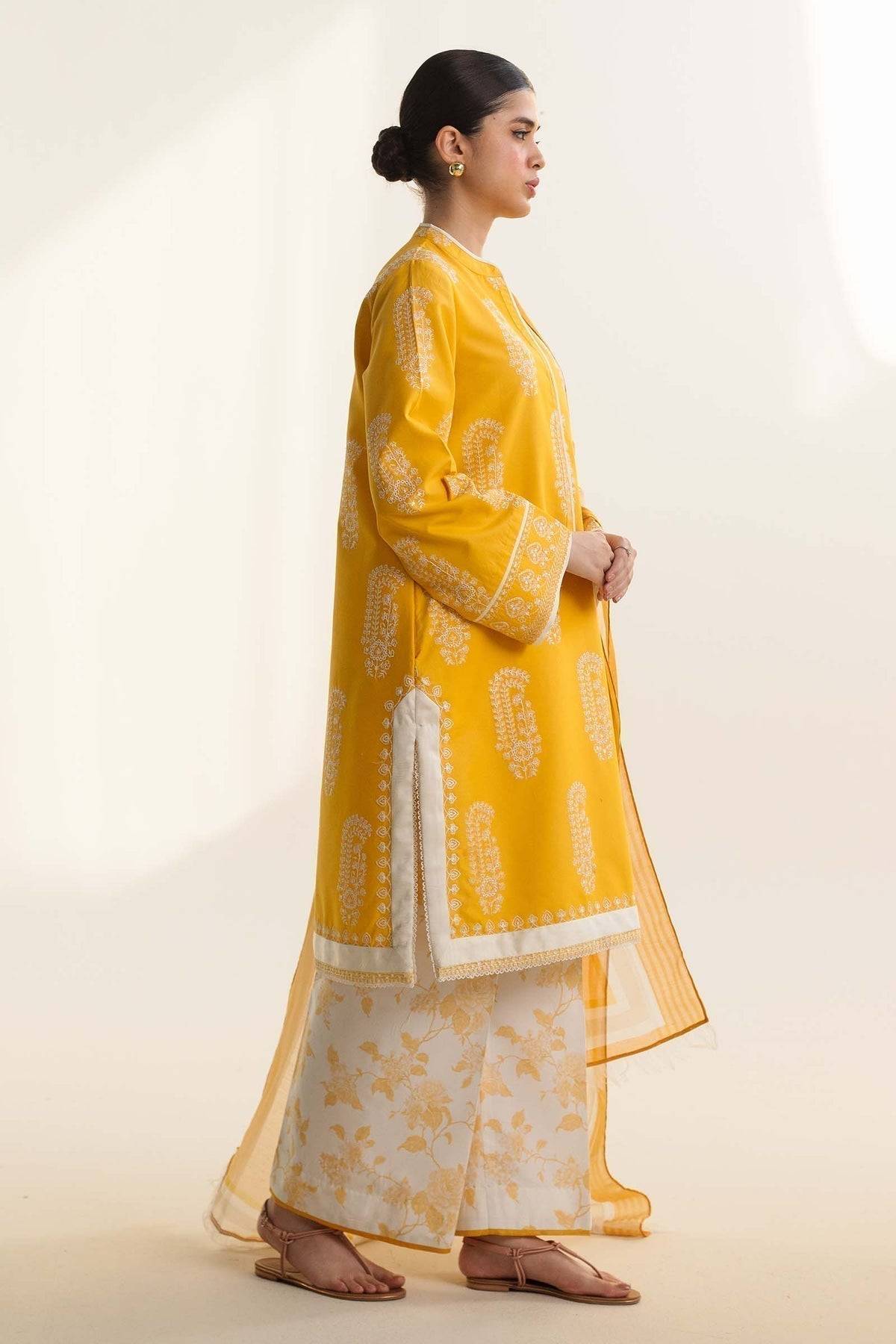 Envision the captivating artistry on this chic ensemble kissed by a luscious yellow hue. Adorned with a graceful digital printed dupatta and paired with cambric pants, Its a harmonious ode to timeless elegance.