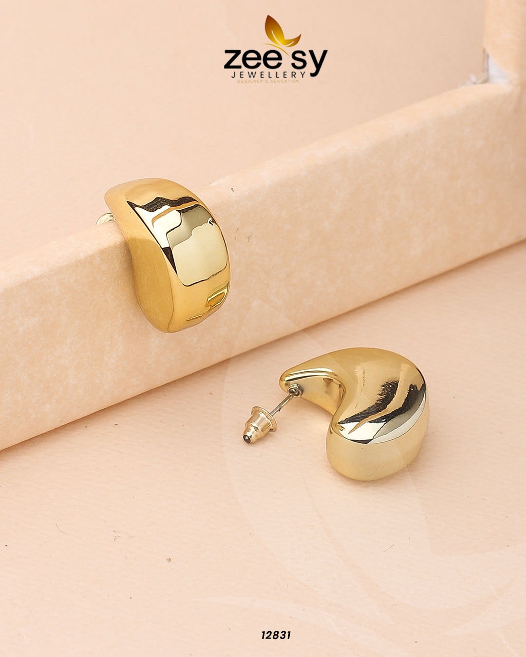 Embrace contemporary elegance with these modern crescent hoop earrings, available in both glossy gold and silver finishes. The unique crescent shape adds a chic twist to traditional hoop earrings, making them a perfect accessory for any outfit.