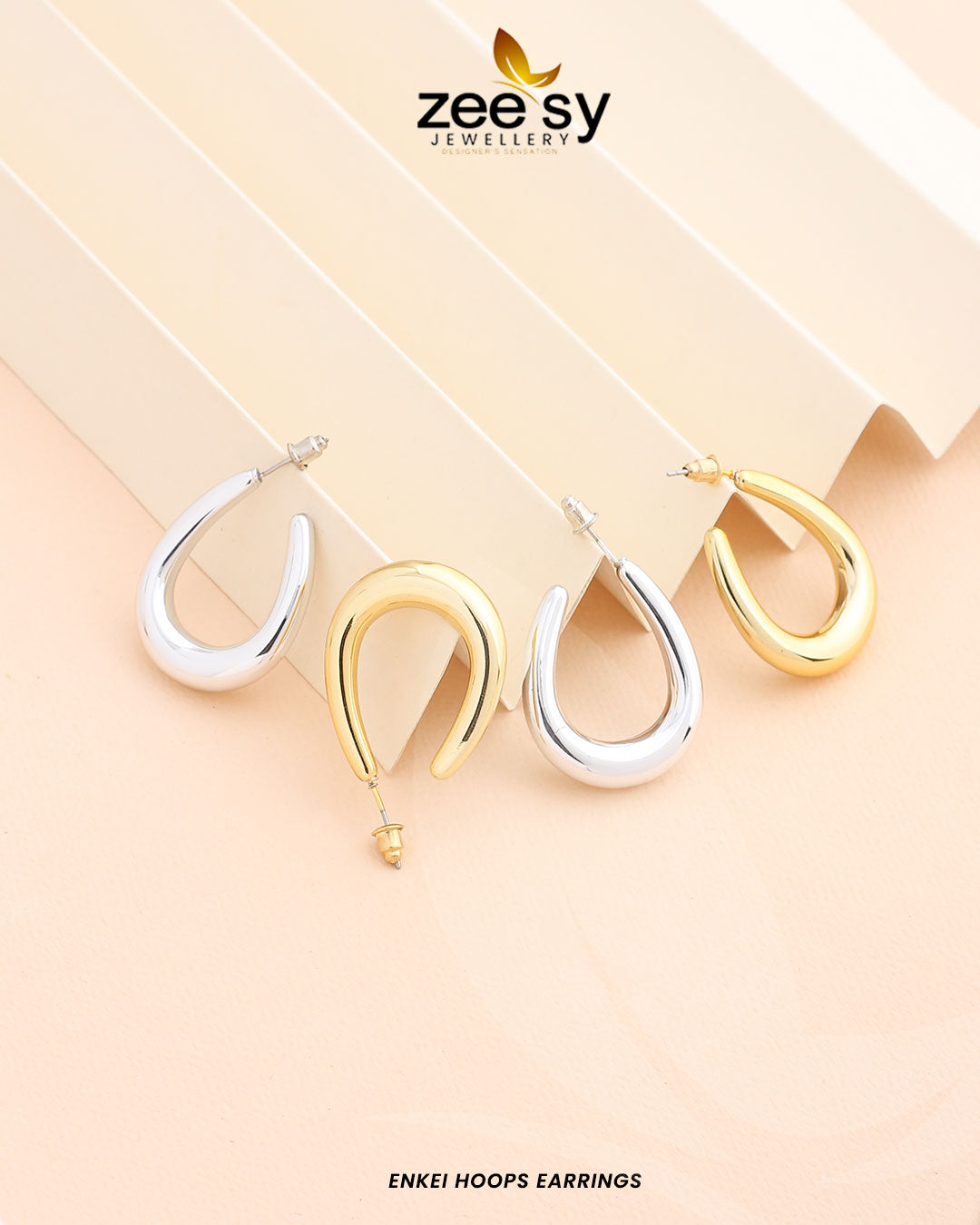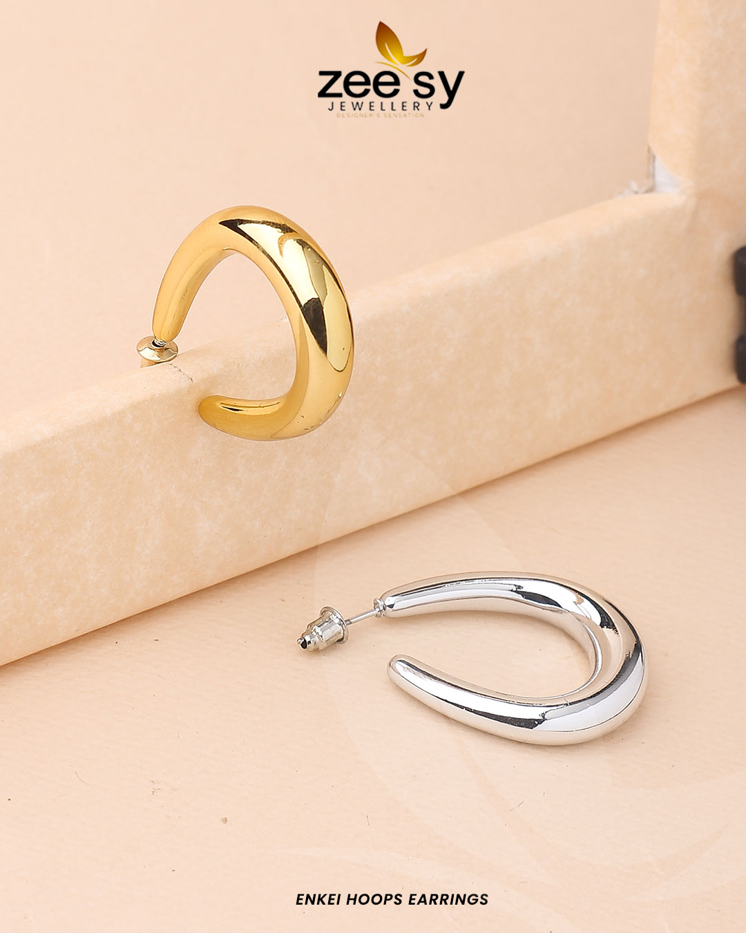 The Enkei Hoops Earrings from Zee Sy Jewellery offer a modern twist on the classic hoop design. Crafted in sleek gold and silver finishes, these earrings feature a unique crescent shape that adds a touch of sophistication to any outfit. With a height of 1.2 inches and a lightweight feel of just 0.015 lbs, these earrings are comfortable and stylish, making them perfect for daily wear or special occasions. The polished surface reflects light beautifully, enhancing its elegant appearance. Whether you choose the warm gold or the cool silver tone, these hoops will surely become a favorite in your jewelry collection.