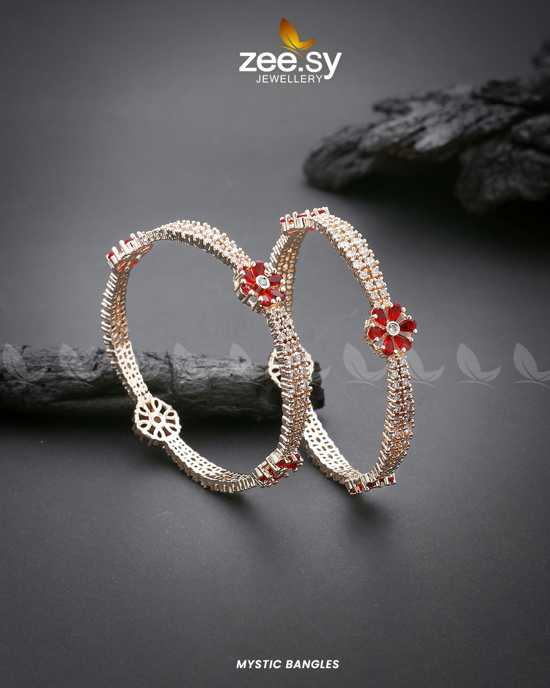 Explore our stunning bangle collection, from traditional designs to contemporary styles, perfect for special events. Featuring a american cut bangle with intricate floral patterns, uncut white stones, and vibrant accent gems. A regal accessory that blends durability with timeless artistry, ideal for weddings and festive occasions.