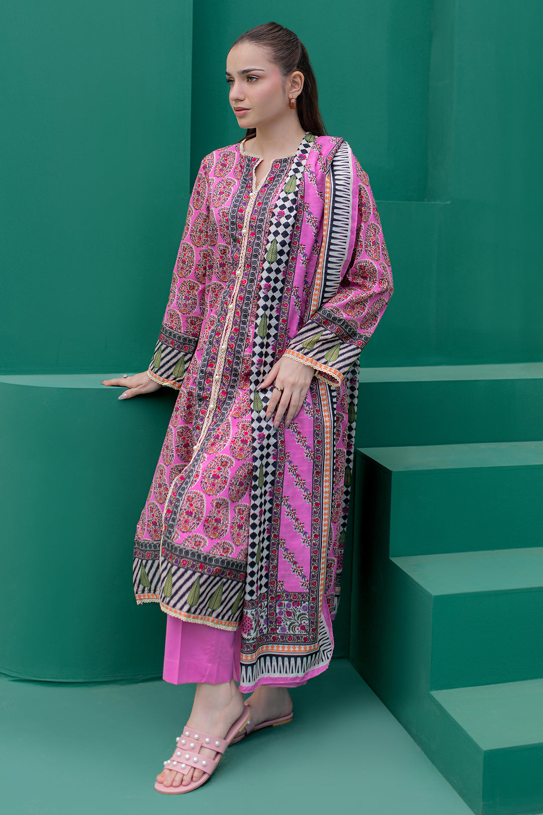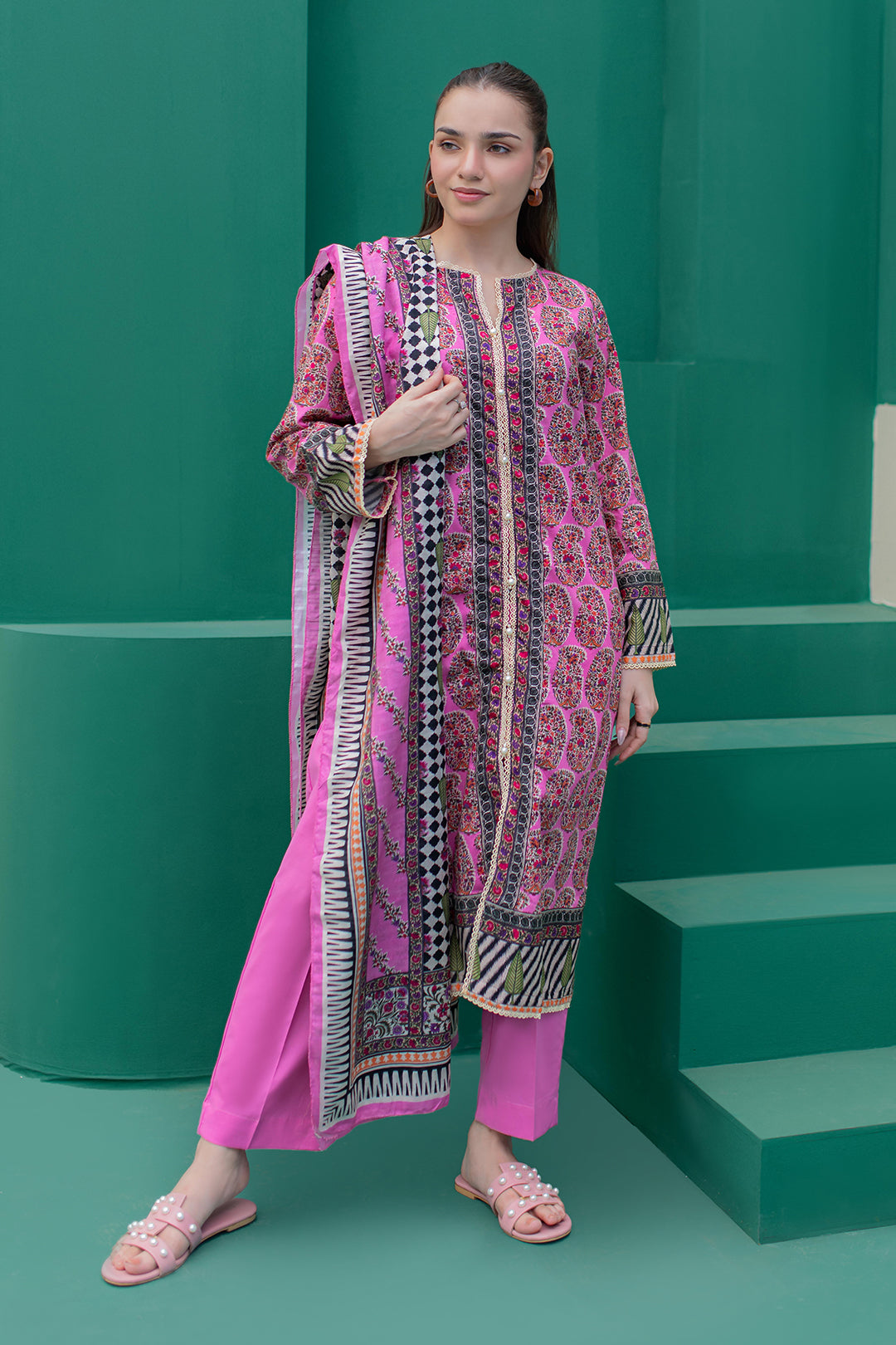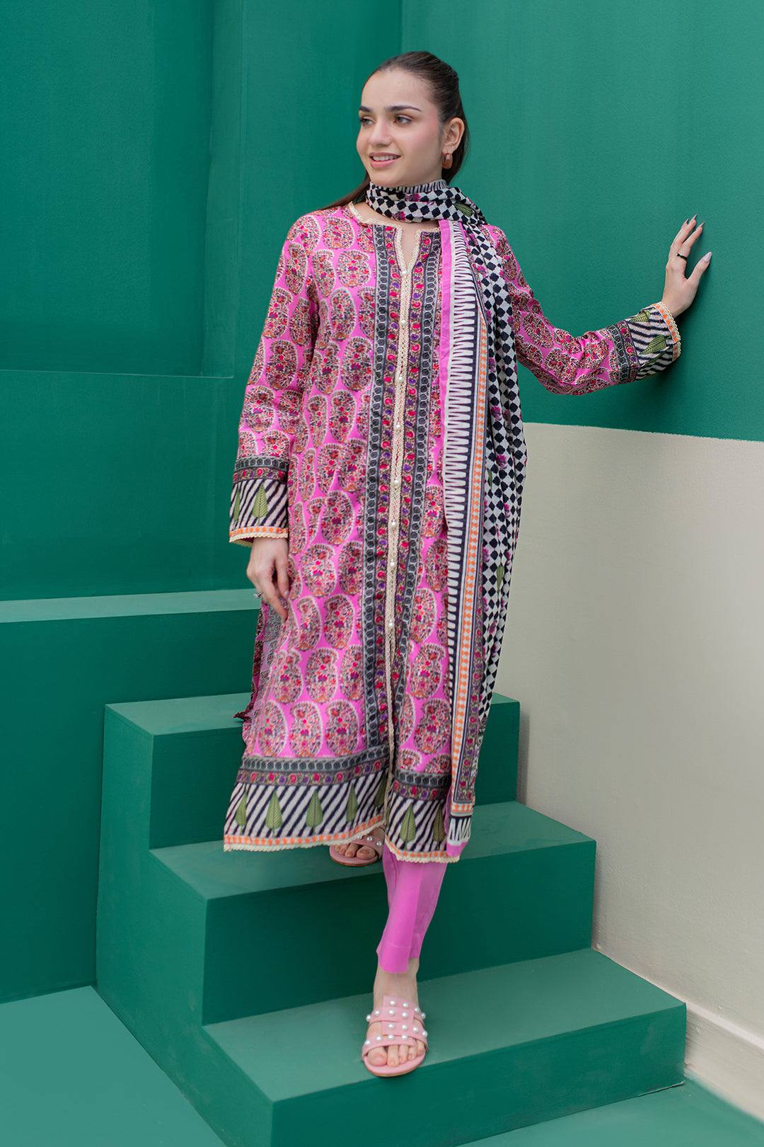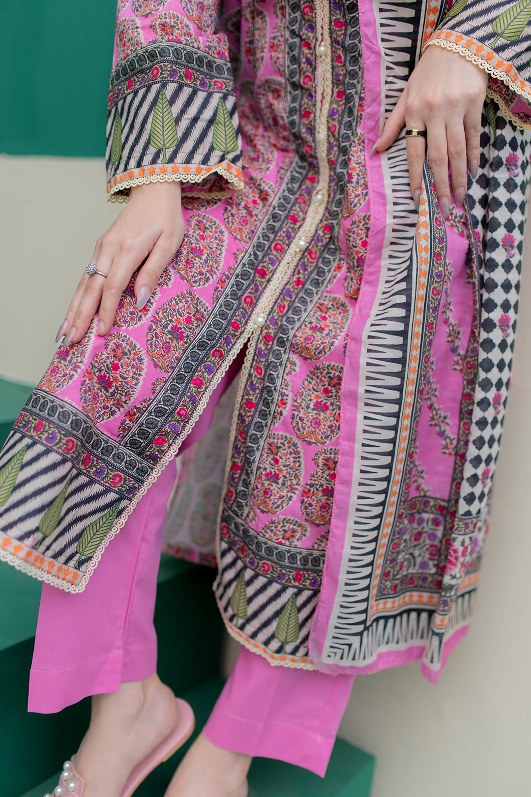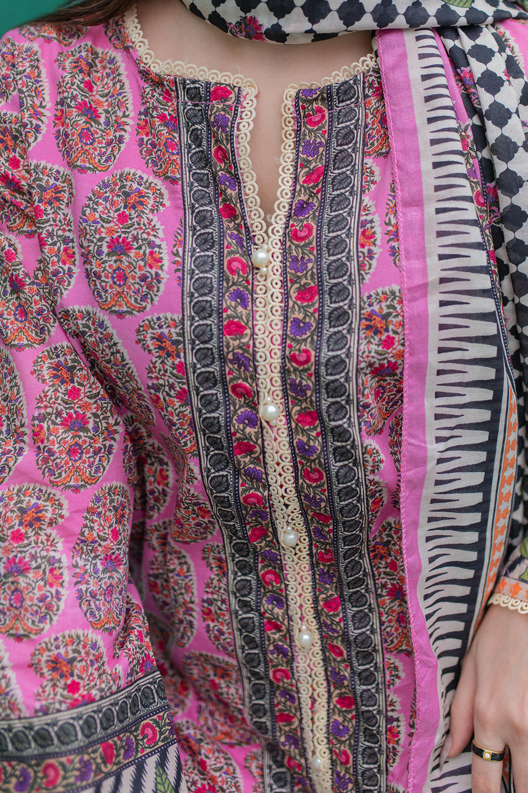 Update your wardrobe with our elegant Kurta Dupatta Trouser set - 2830. The printed design on soft Cambric fabric is perfect for any occasion. This set includes a comfortable trouser and matching dupatta for a complete and stylish look. Available in a beautiful light pink color. Elevate your style with this Pret collection for women.
