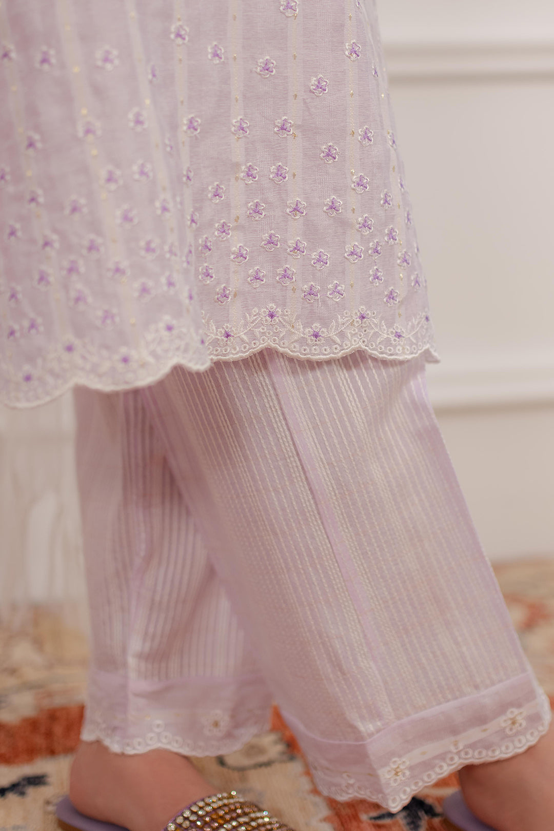 This Embroidered Kurta Dupatta Trouser is perfect for women looking for a stylish and comfortable outfit. Made with high-quality yarn-dyed fabric, it features intricate embroidery details and comes in a beautiful lilac color. Elevate your wardrobe with this modern and elegant Pret ensemble.
