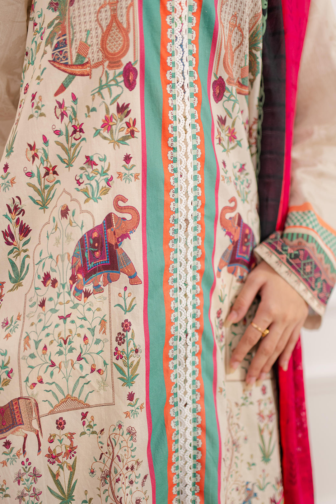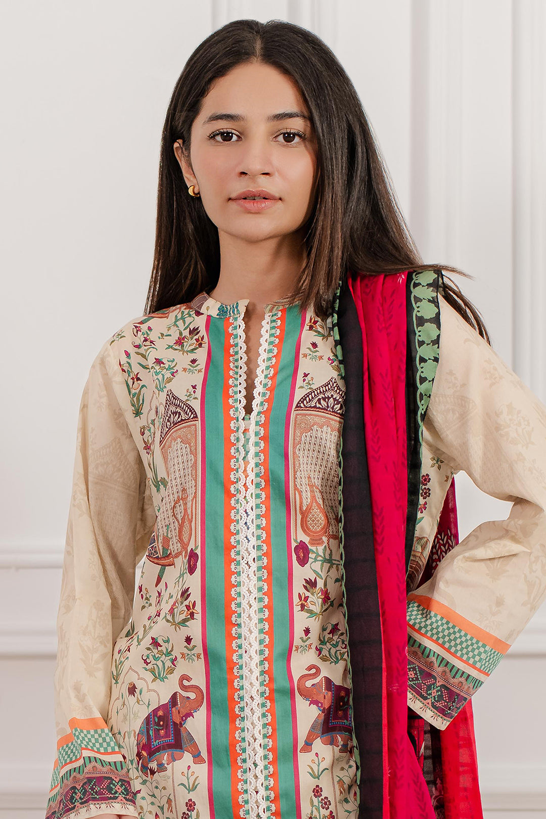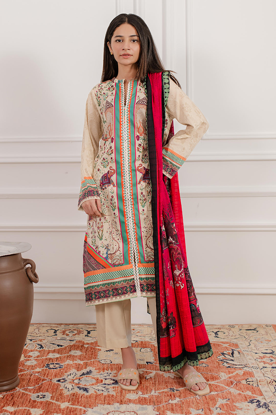 This printed Kurta Dupatta Trouser in beige is a must-have for any woman looking for a stylish and comfortable outfit. Made with high-quality lawn fabric, this Pret set offers a beautiful design and effortless wear. Elevate your wardrobe with this elegant and versatile ensemble.