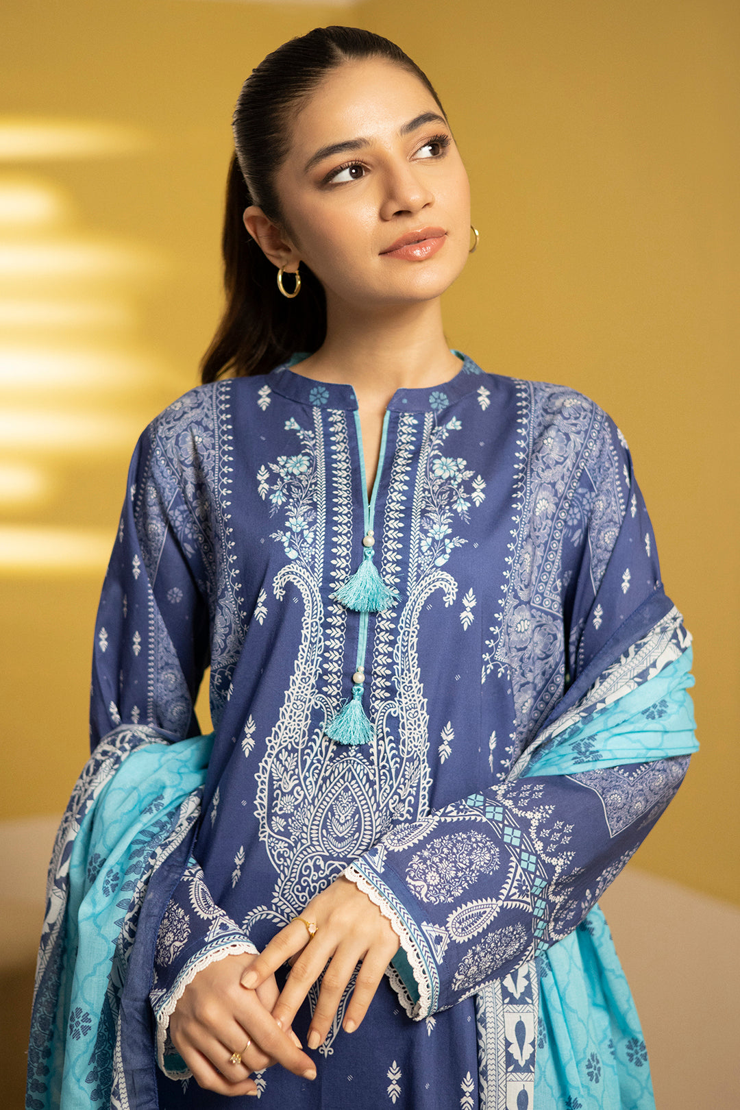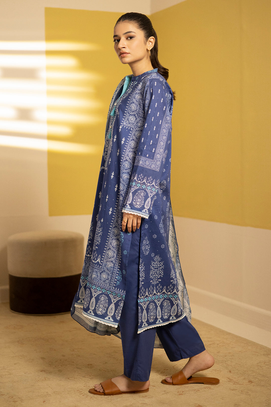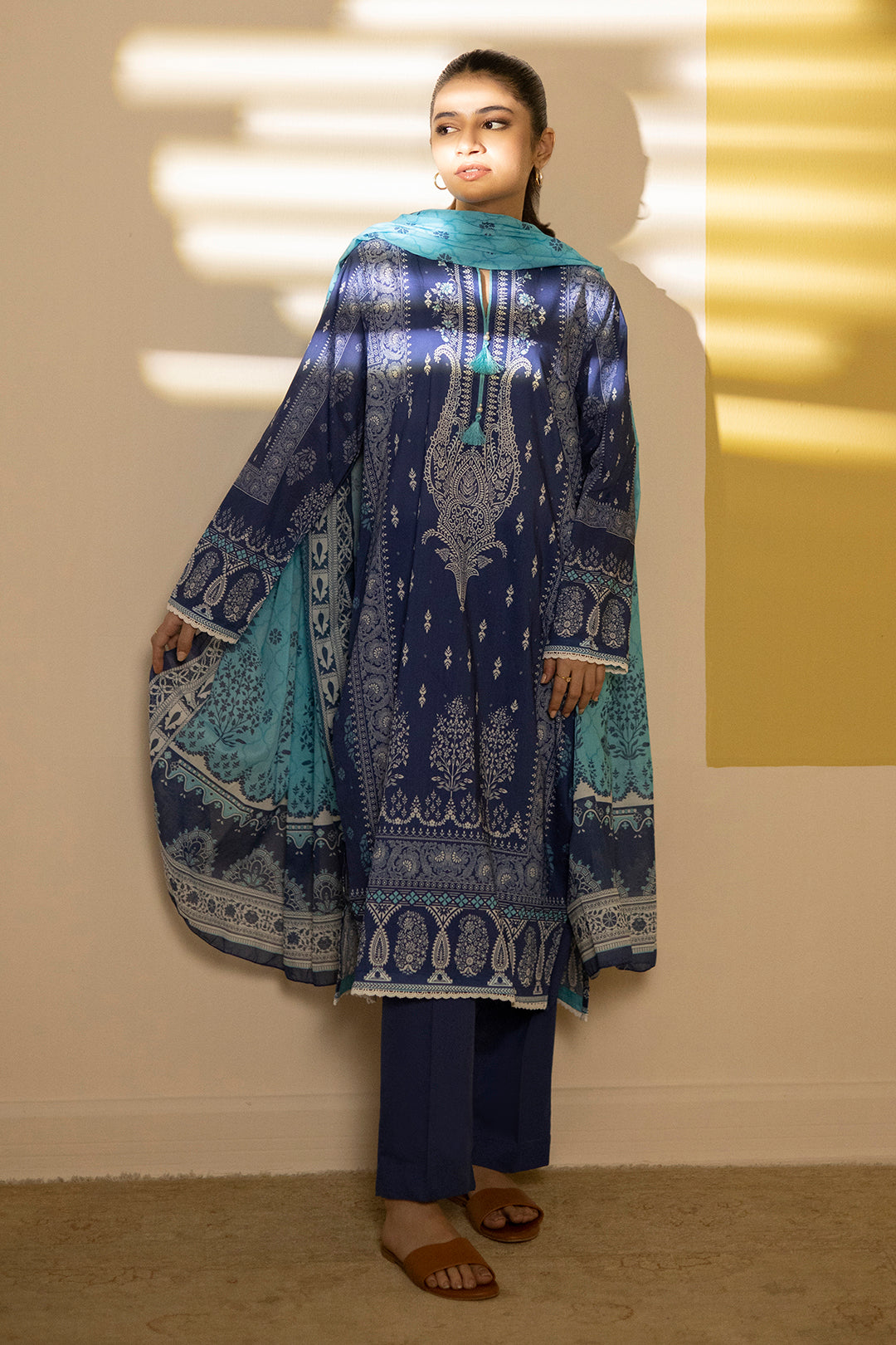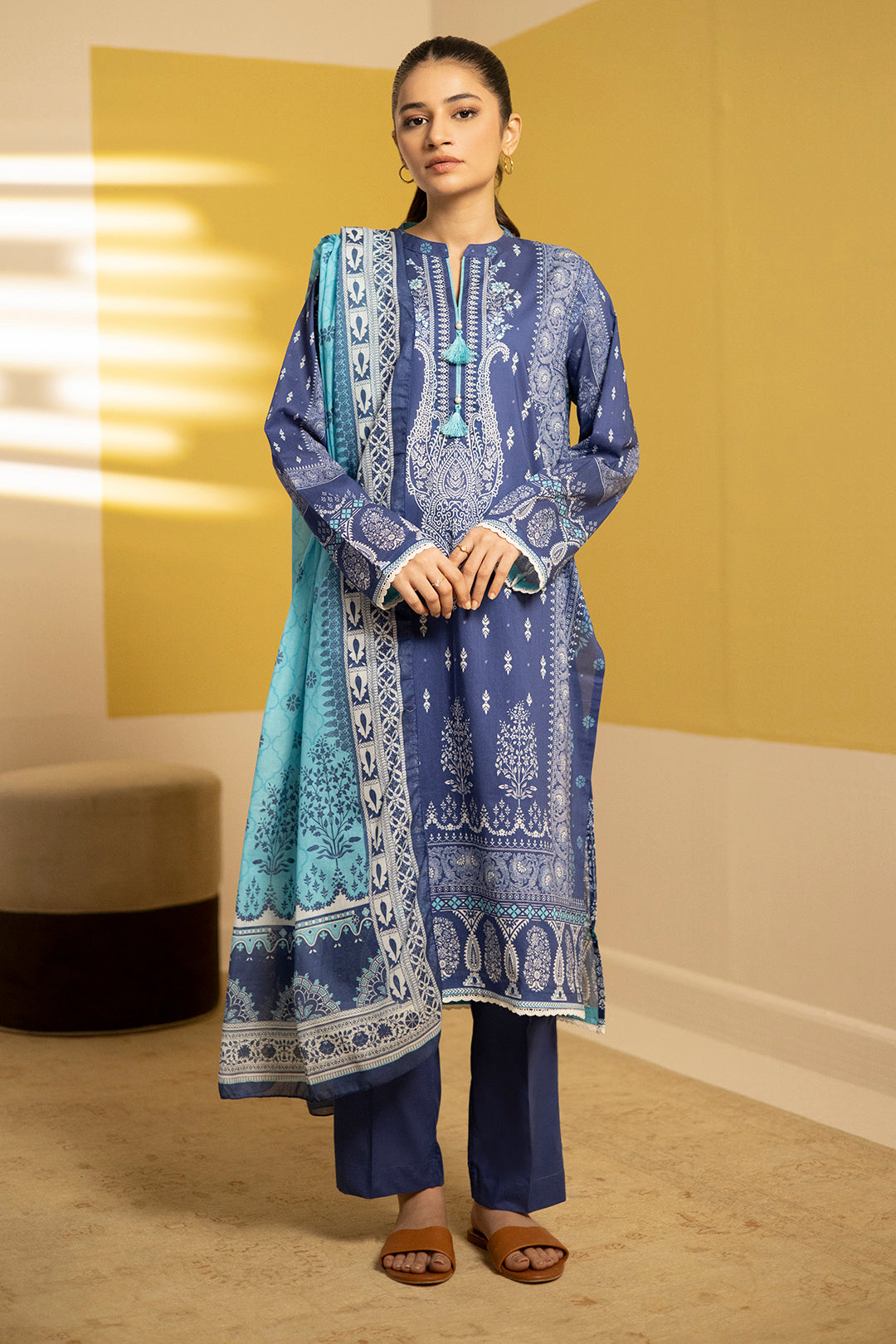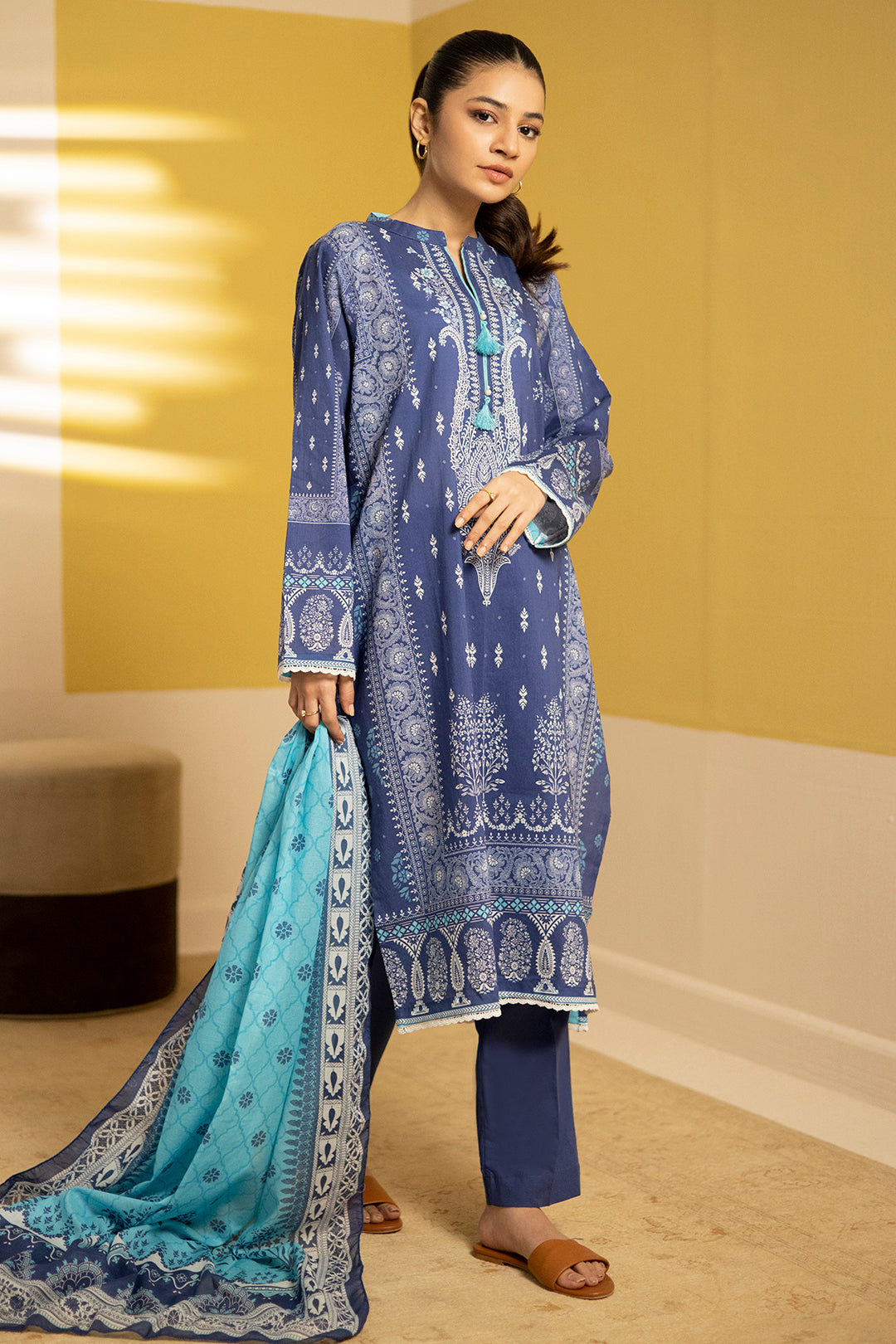 This printed Kurta Dupatta Trouser (lawn fabric) set is designed for women looking for a sophisticated, lightweight and stylish outfit. The blue color adds a touch of elegance to this pret ensemble. Perfect for any casual event, this set is a must-have for your wardrobe.