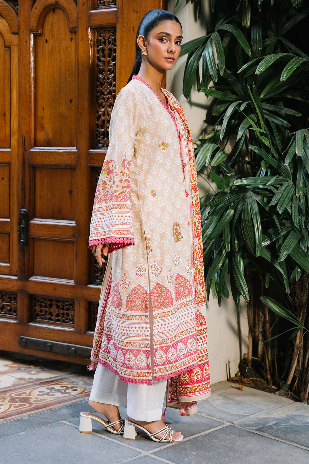 Zellbury | Unstitched 2 Piece Beige Color | Embroidered Shirt Dupatta - 0179