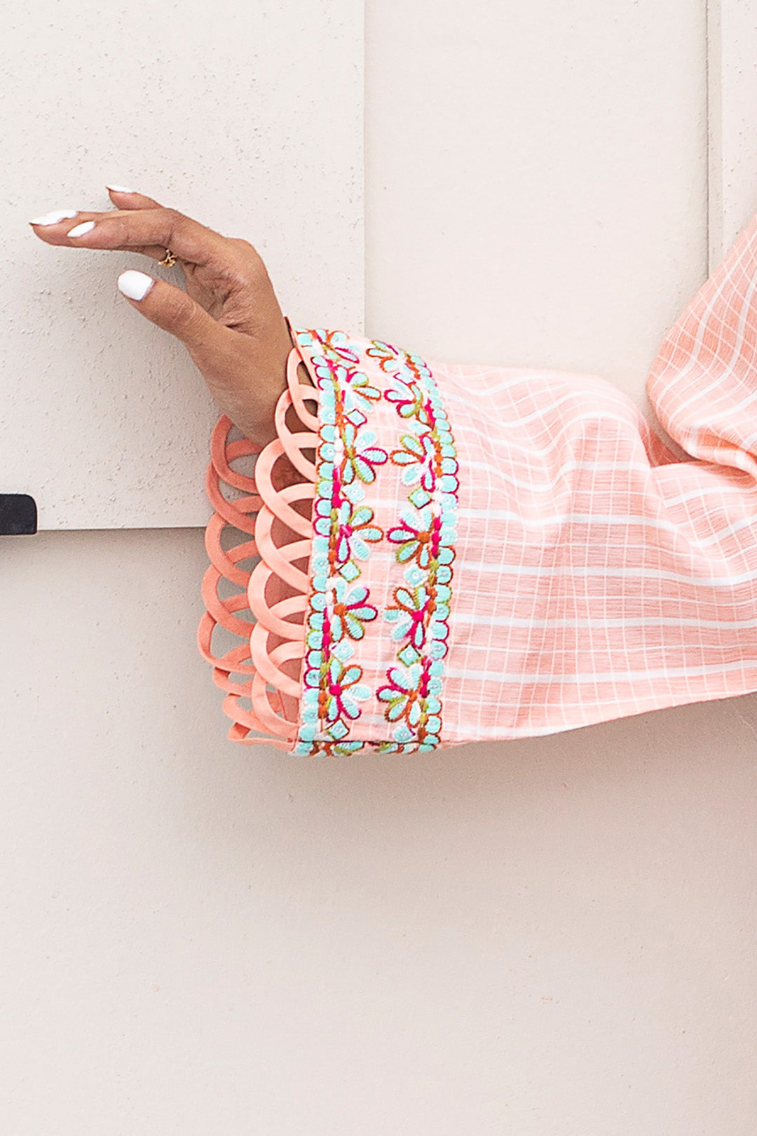 Buy 3 Piece Unstitched Peach Jacquard Embroidered Shirt Shalwar Dupatta - Zellbury